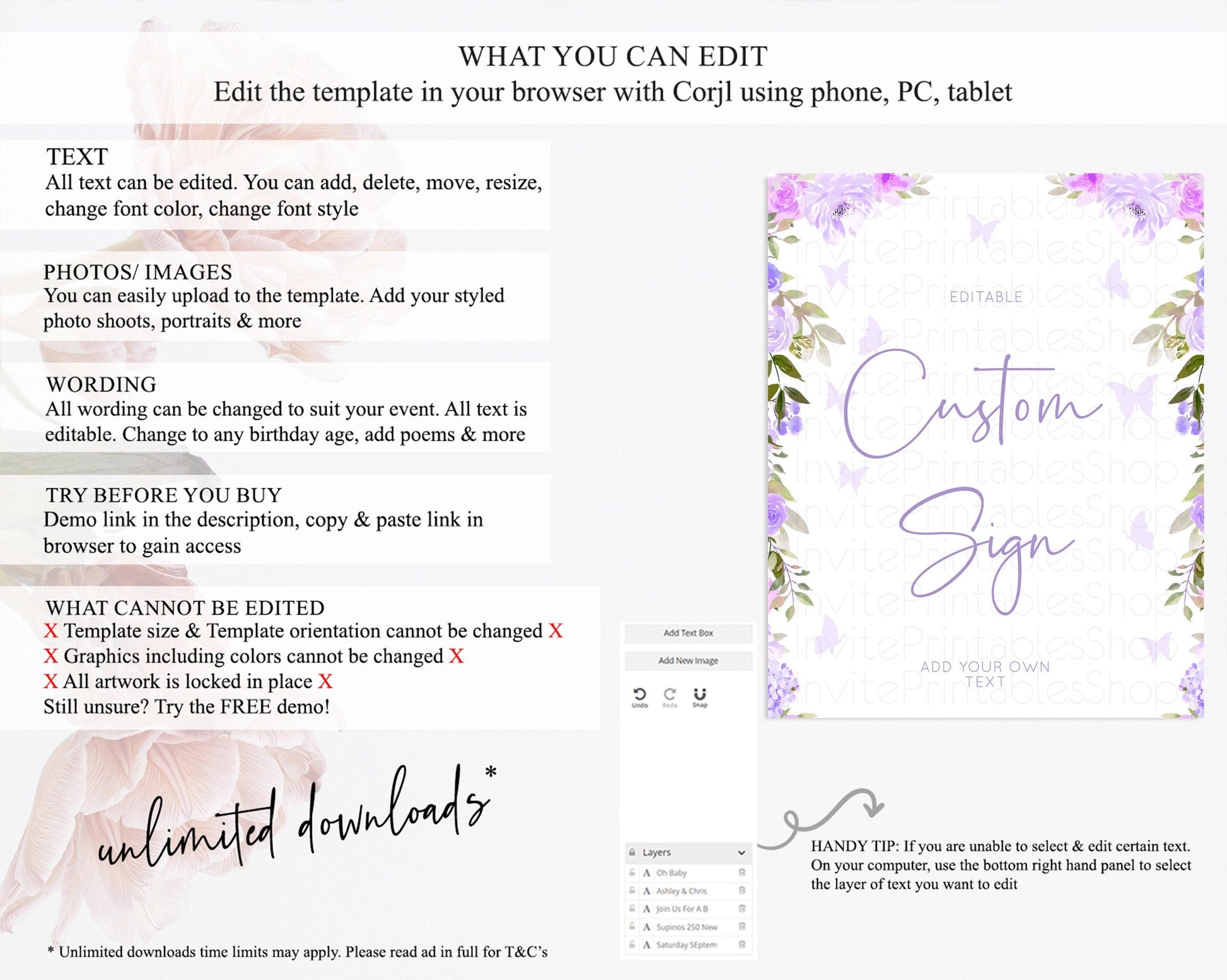 • After purchase, Corjl emails your editing link. Allow up to 15 minutes for delivery.