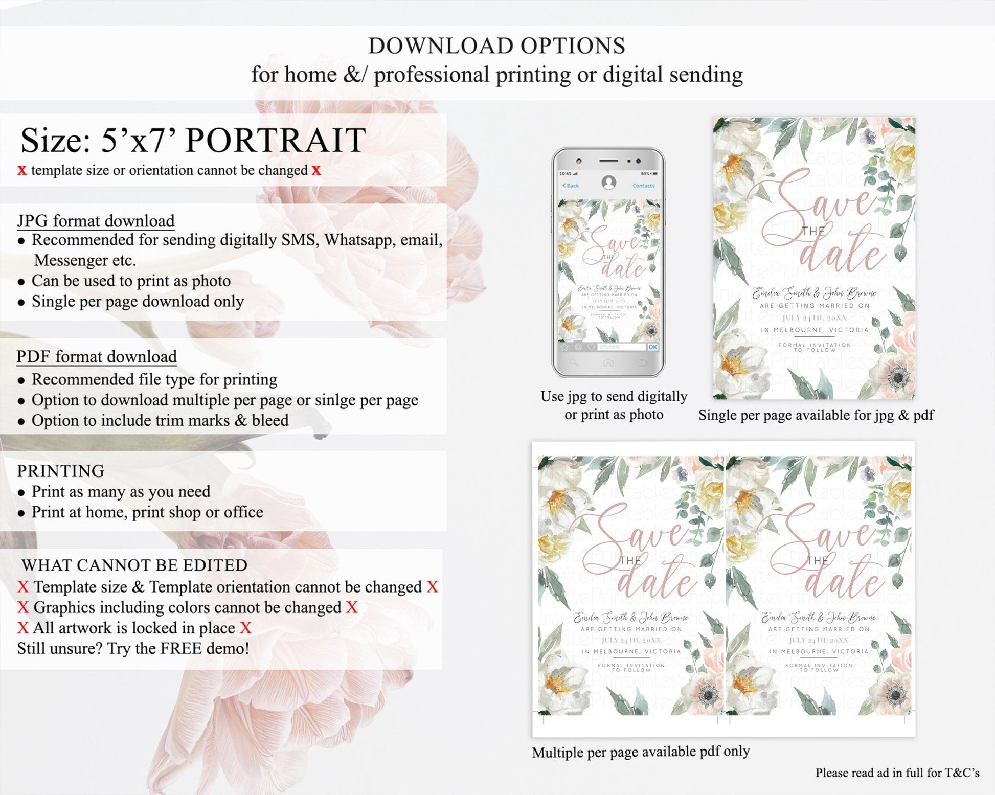 Wildflower Save The Date Template Secret Garden Save The Date Pastel Floral Garden Party Boho Flowers Birthday Baby Shower Wedding D10121