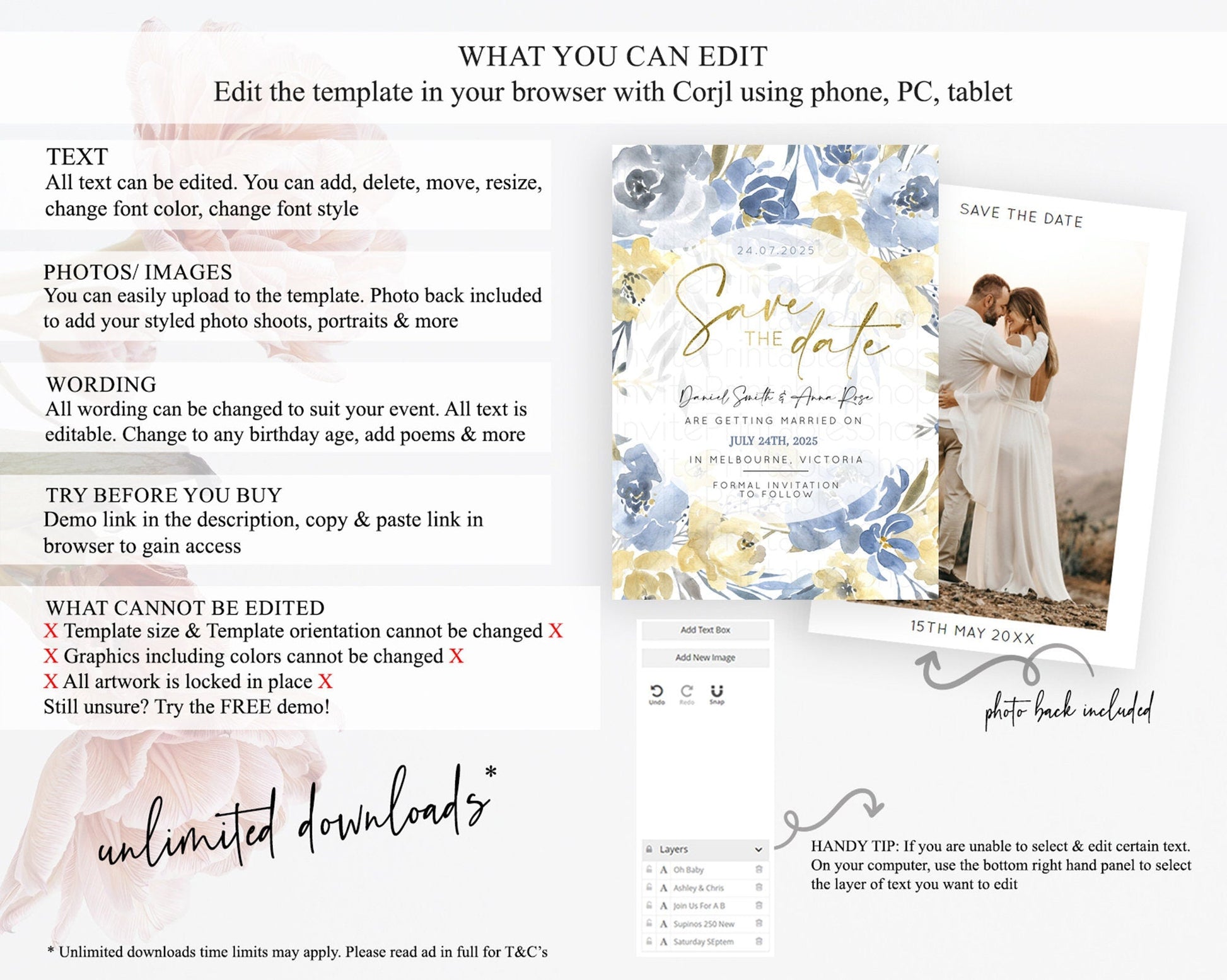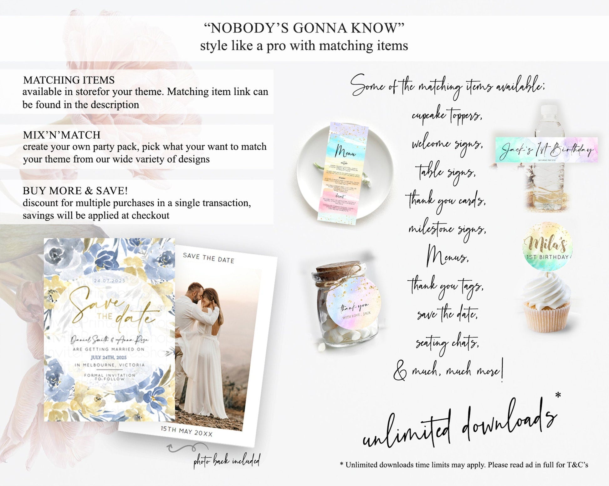 Wildflower Save The Date Template Secret Garden Save The Date Pastel Floral Garden Party Boho Flowers Birthday Baby Shower Wedding D10189