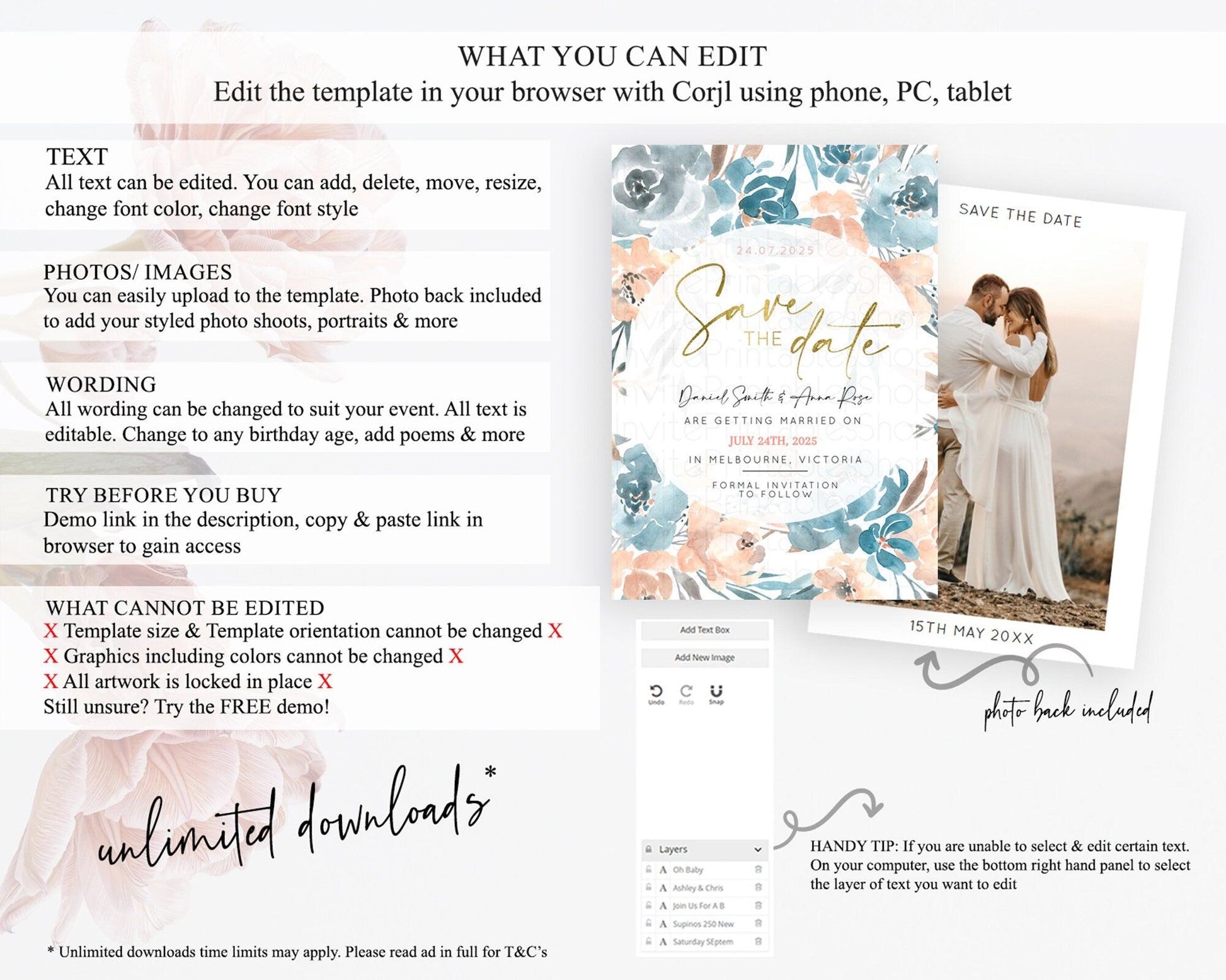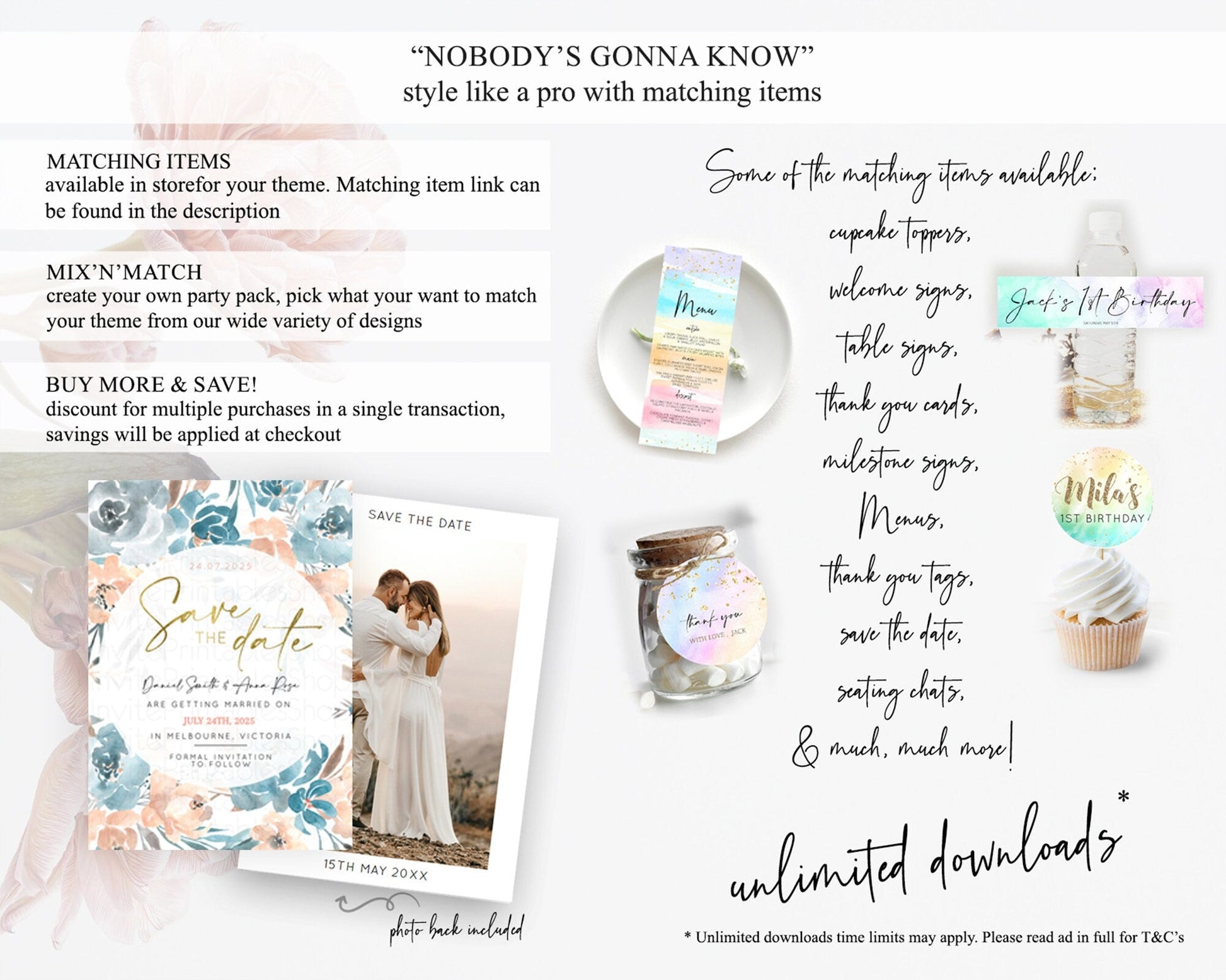 Wildflower Save The Date Template Secret Garden Save The Date Pastel Floral Garden Party Boho Flowers Birthday Baby Shower Wedding D10190