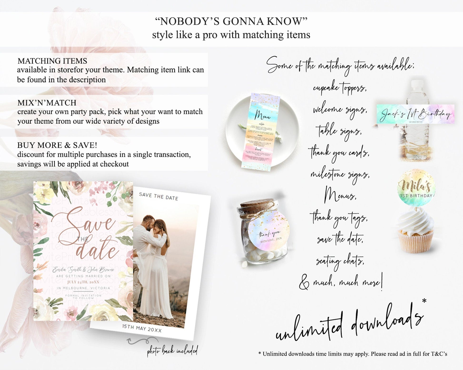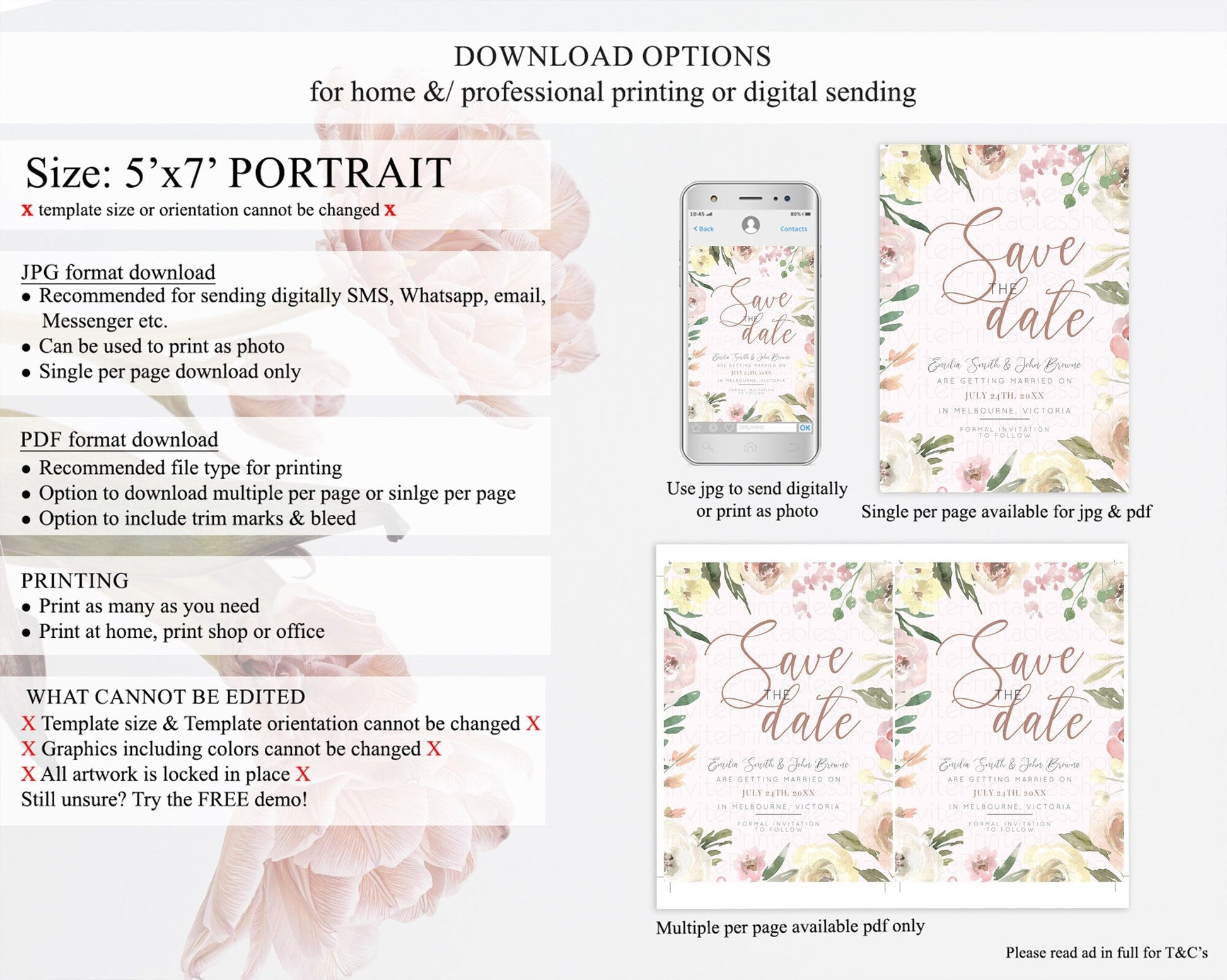 Wildflower Save The Date Template Secret Garden Save The Date Pastel Floral Garden Party Boho Flowers Birthday Baby Shower Wedding D10192
