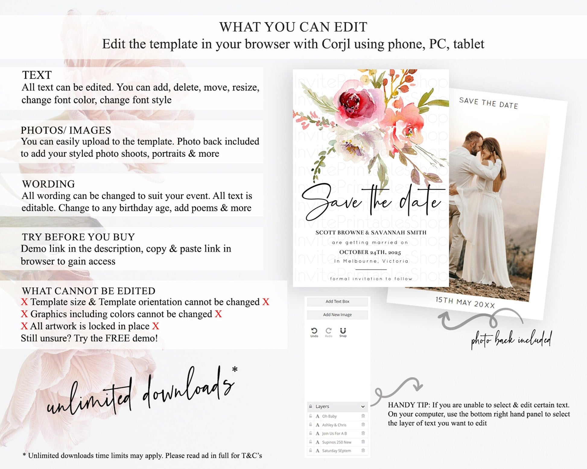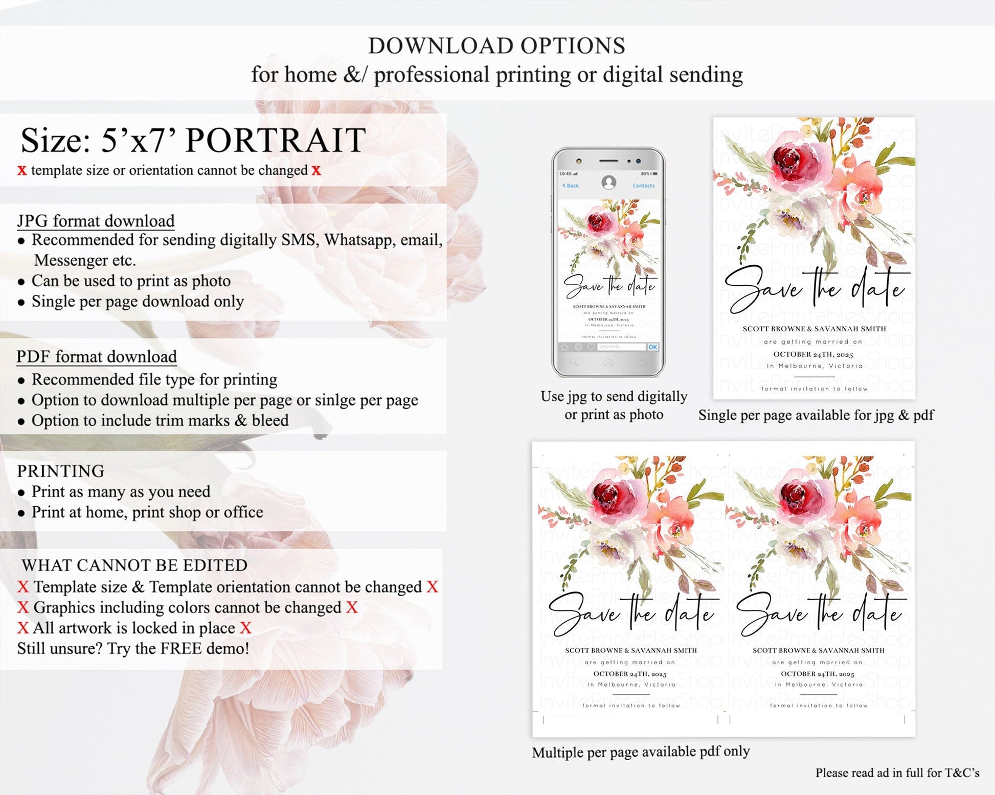 • Template size & orientation cannot be changed. Please use the demo link to confirm this product suits your needs.