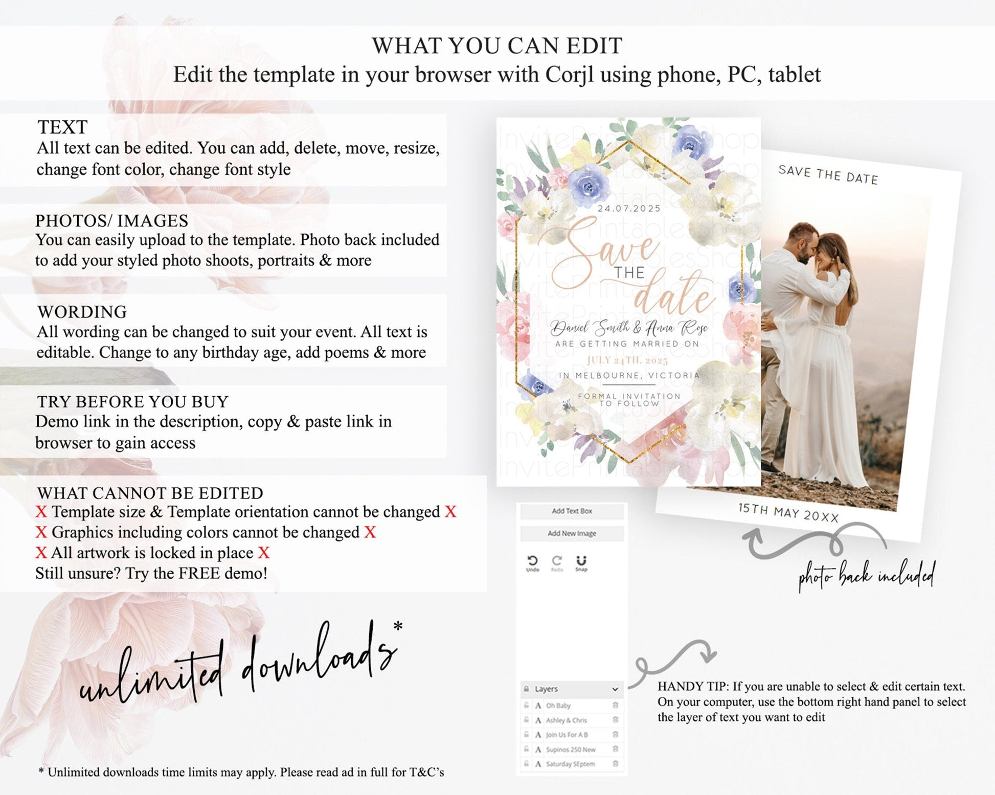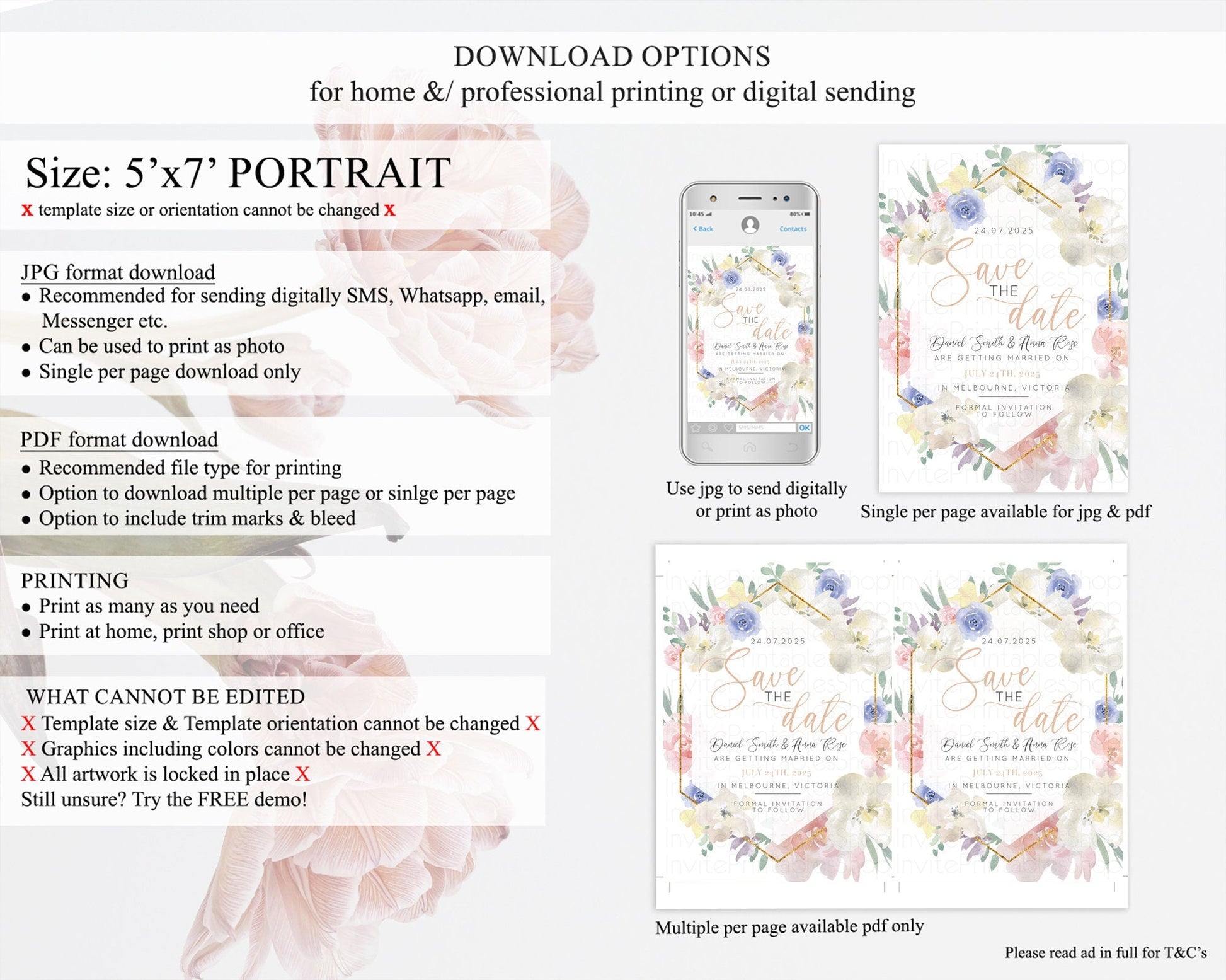 • Template size & orientation cannot be changed. Please use the demo link to confirm this product suits your needs.