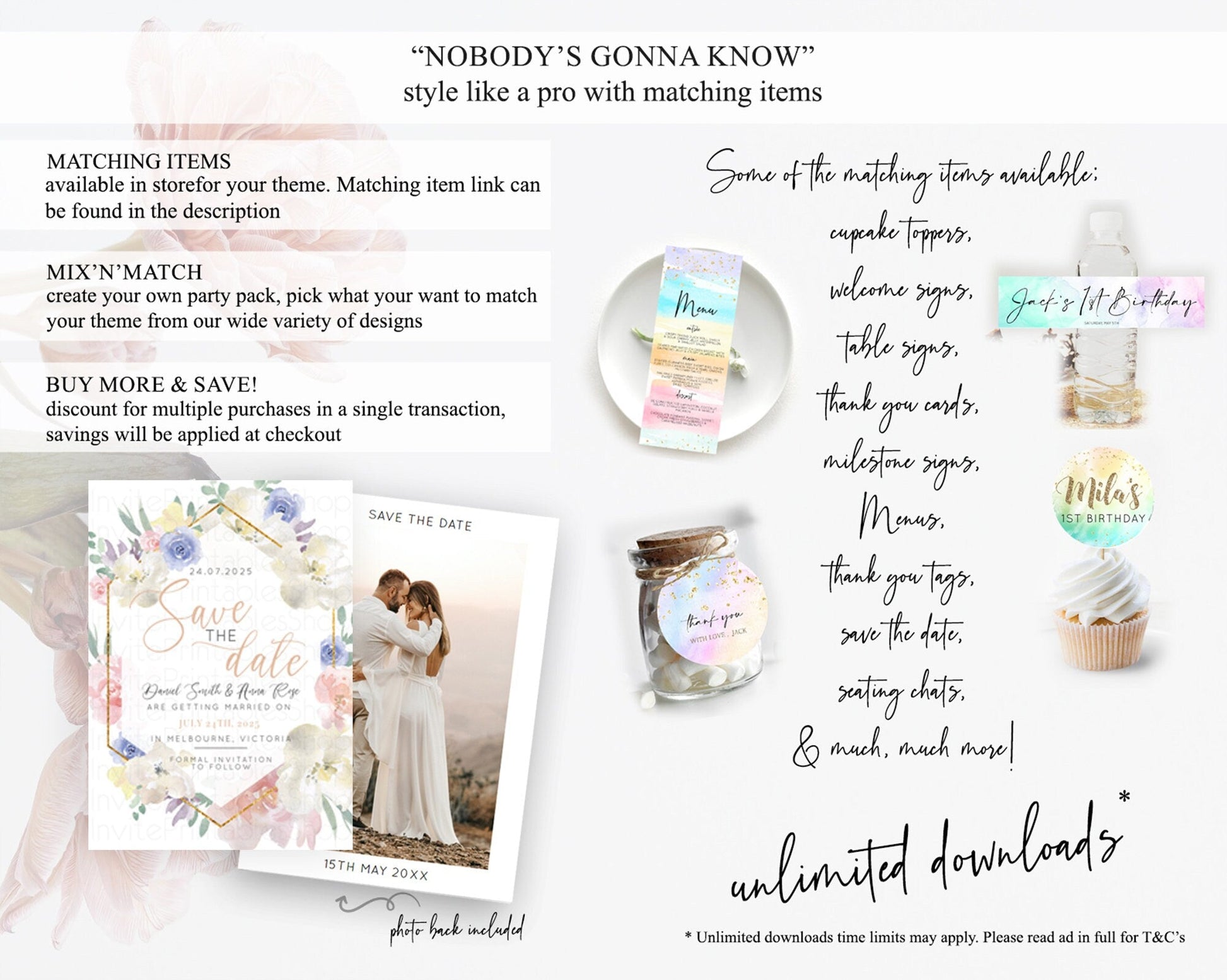 Wildflower Save The Date Template Secret Garden Save The Date Pastel Floral Garden Party Boho Flowers Birthday Baby Shower Wedding D10254