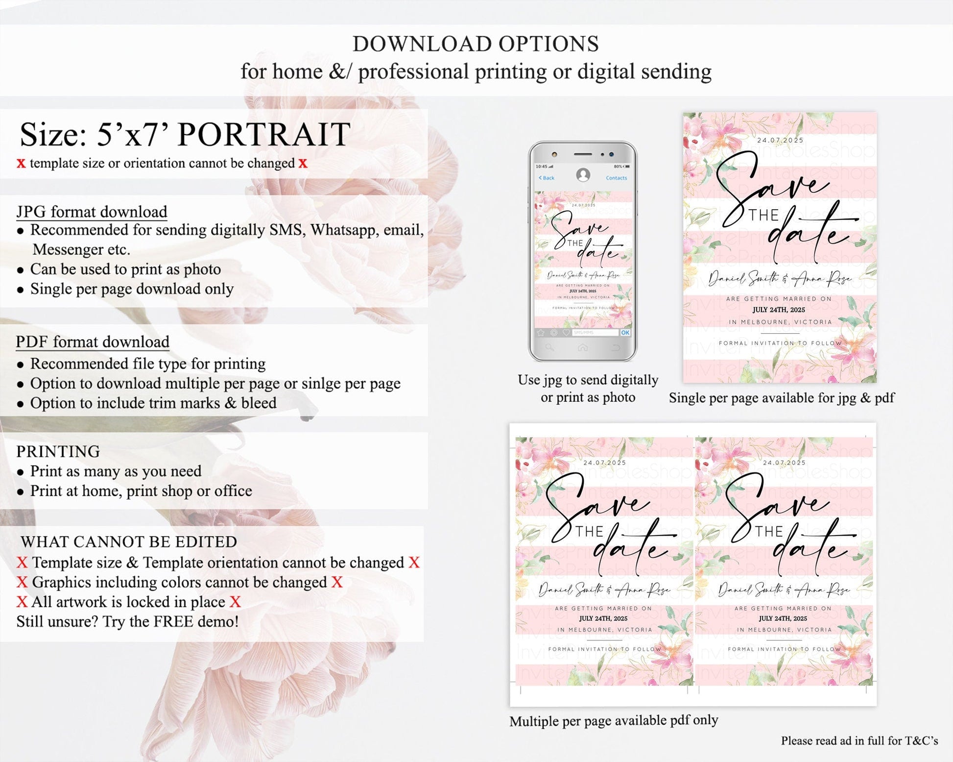 • Template size & orientation cannot be changed. Please use the demo link to confirm this product suits your needs.