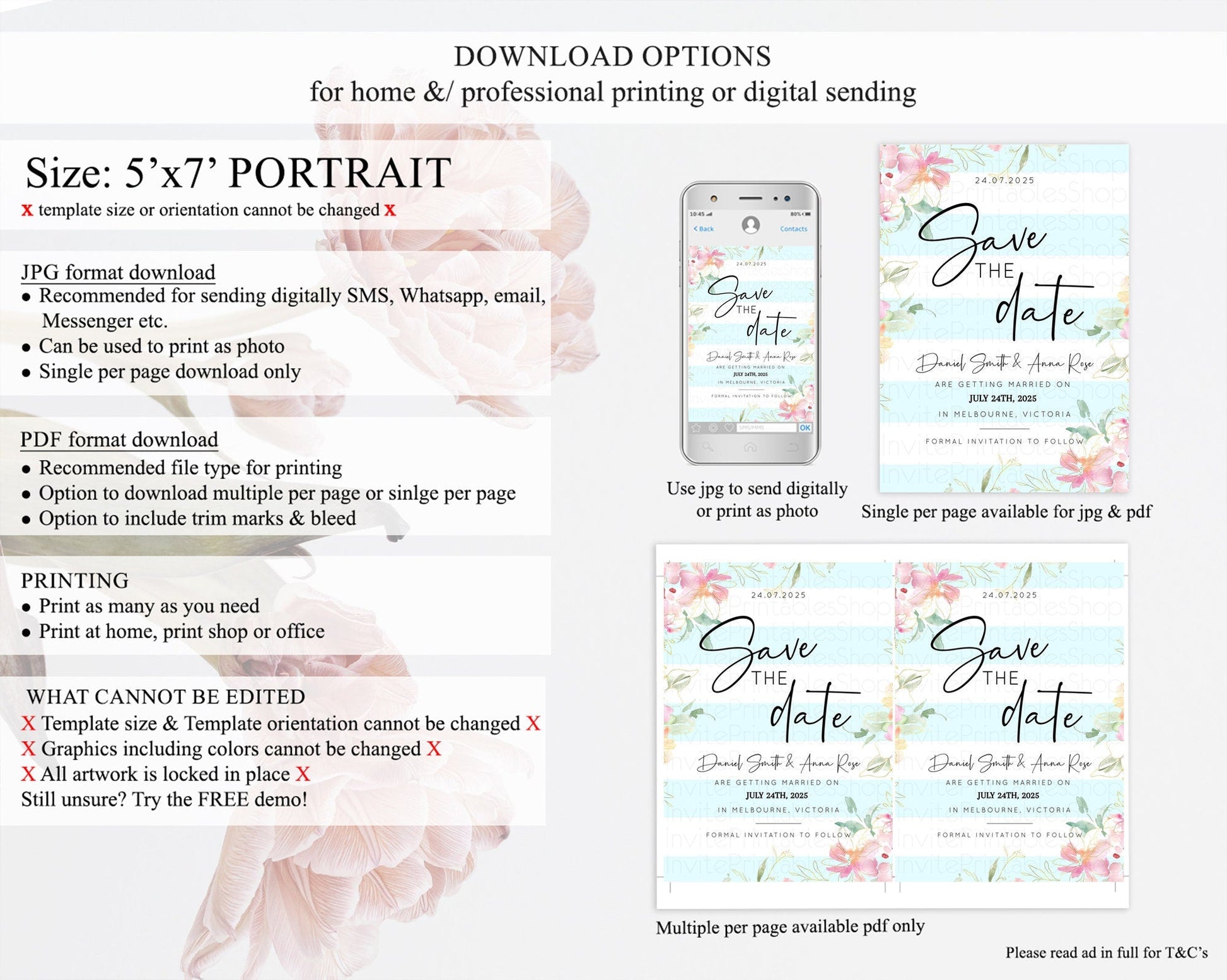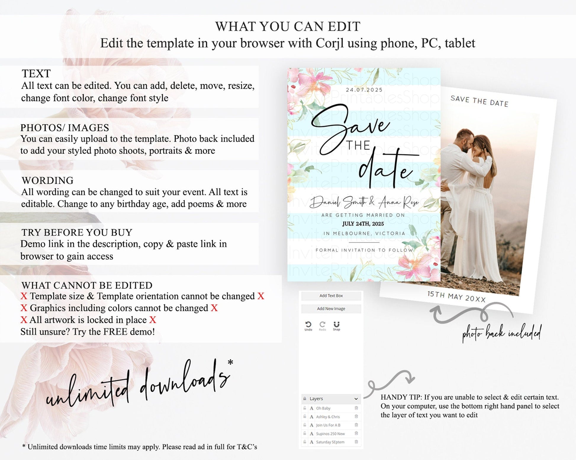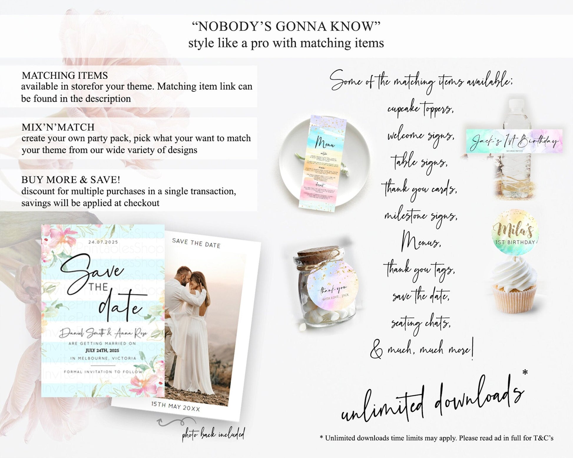 Wildflower Save The Date Template Secret Garden Save The Date Pastel Floral Garden Party Boho Flowers Birthday Baby Shower Wedding D10303