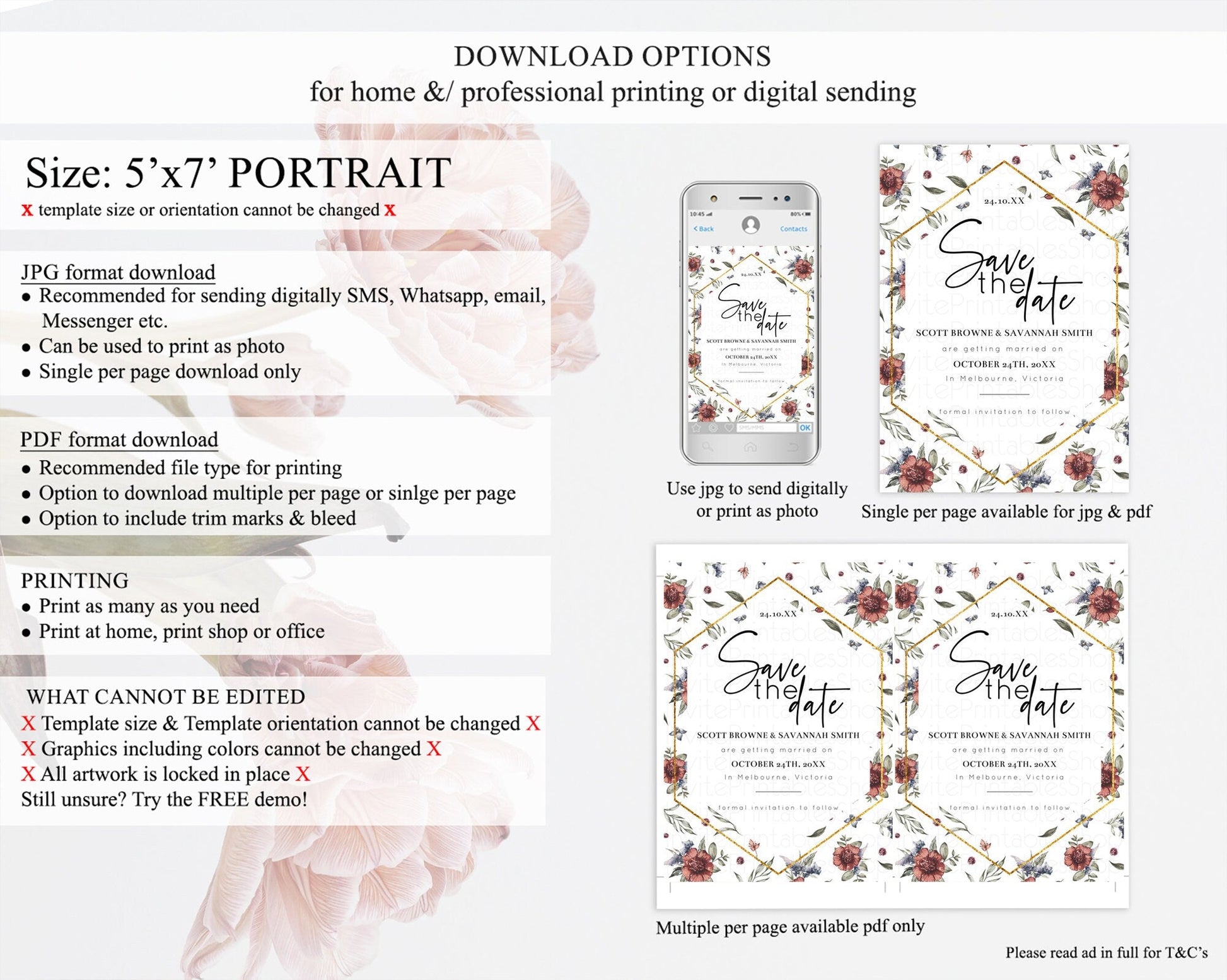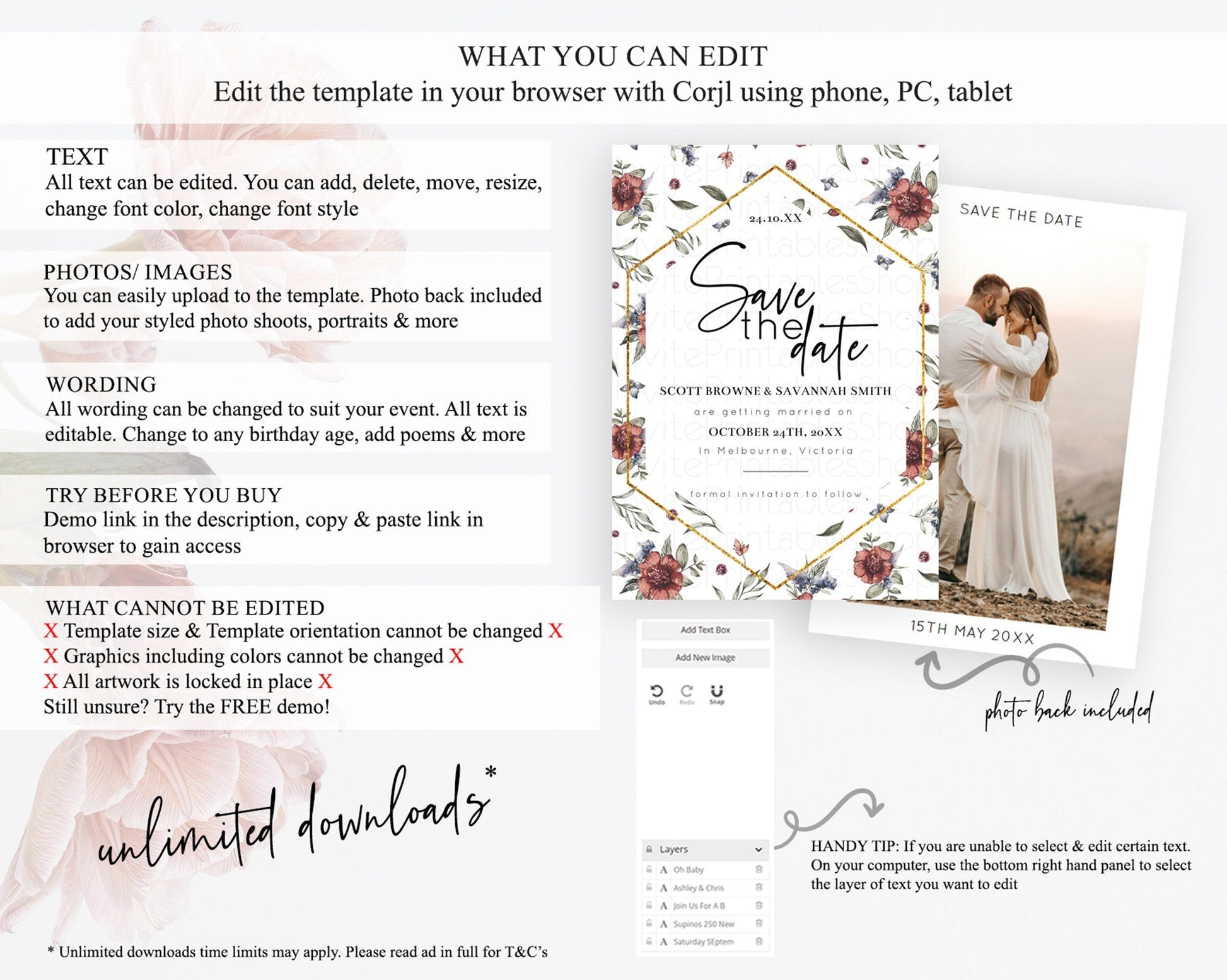 Wildflower Save The Date Template Secret Garden Save The Date Pastel Floral Garden Party Boho Flowers Birthday Baby Shower Wedding D10503