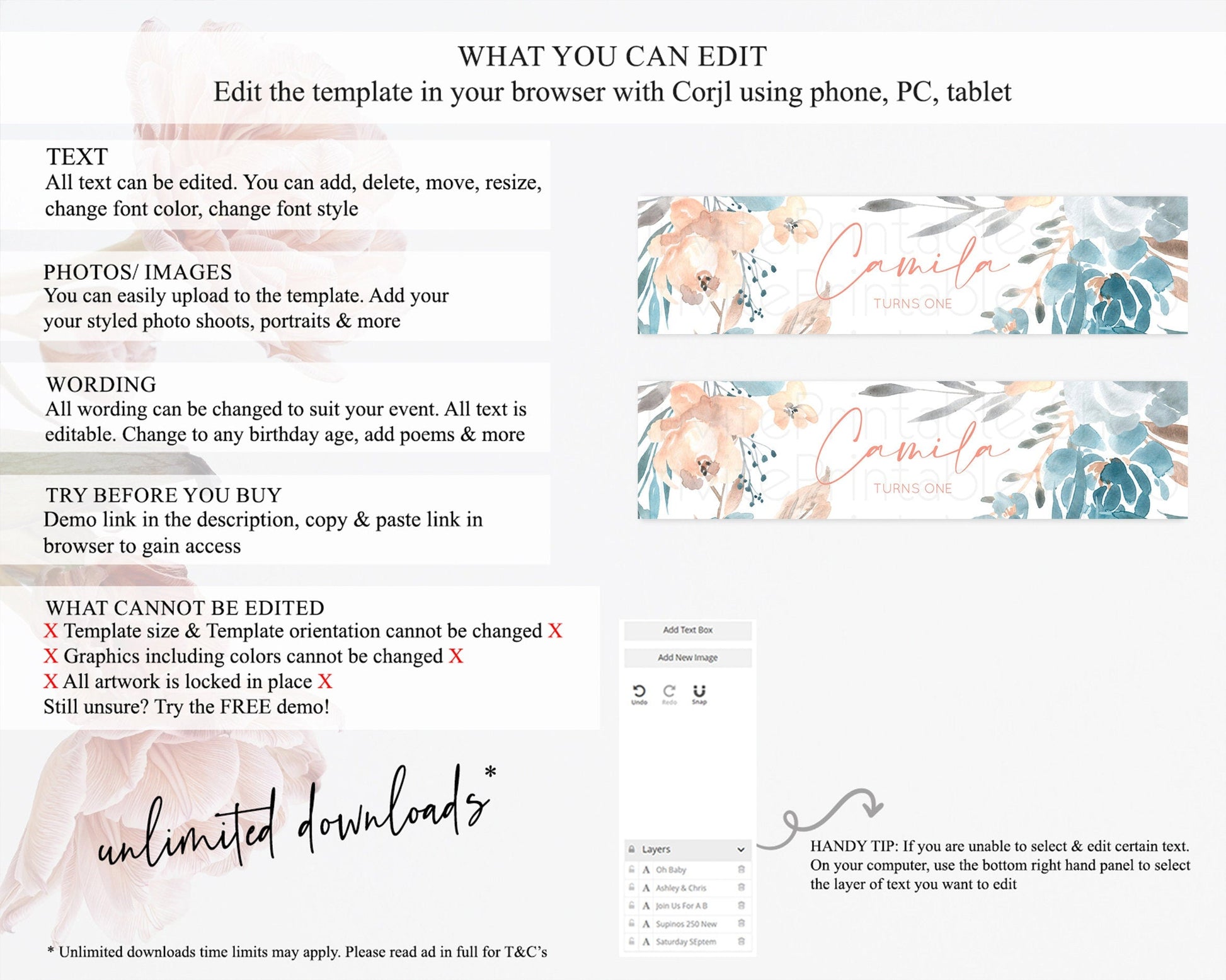Wildflower Water Label Template Secret Garden Water Label Pastel Floral Garden Party Decor Boho Flowers Birthday Baby Shower Wedding D10190
