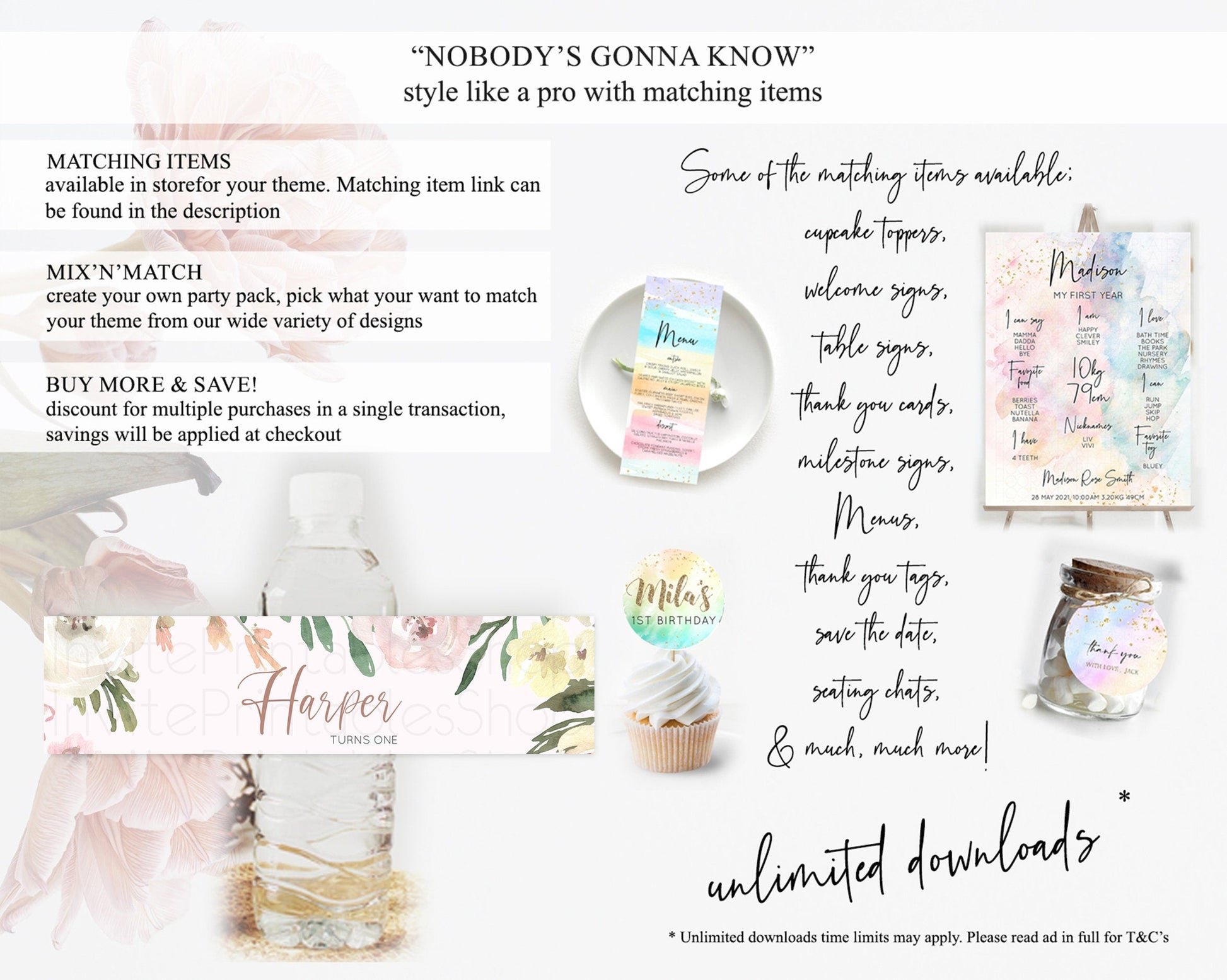 Wildflower Water Label Template Secret Garden Water Label Pastel Floral Garden Party Decor Boho Flowers Birthday Baby Shower Wedding D10192