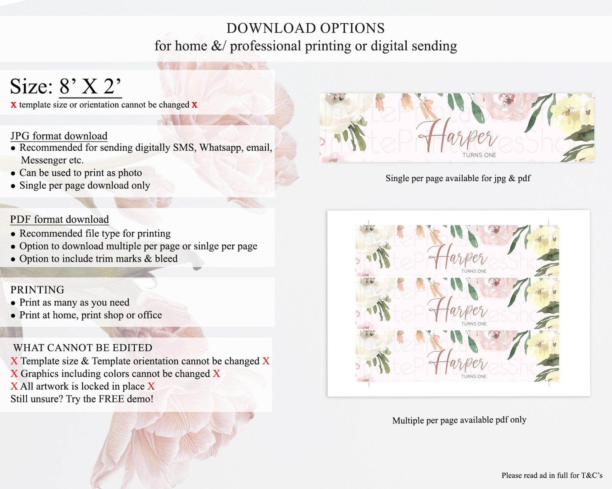 • Template size & orientation cannot be changed. Please use the demo link to confirm this product suits your needs.