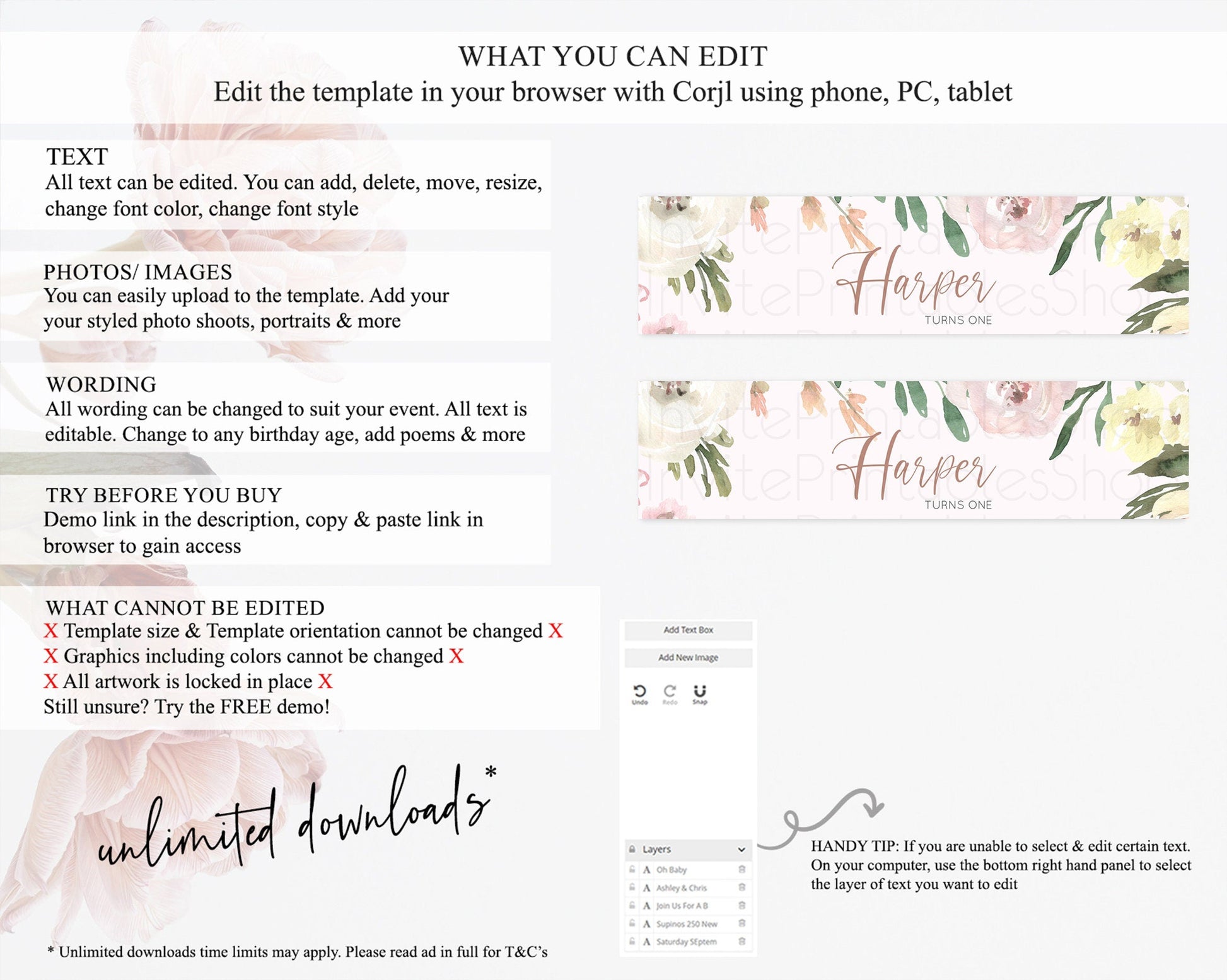 • After purchase, Corjl emails your editing link. Allow up to 15 minutes for delivery.