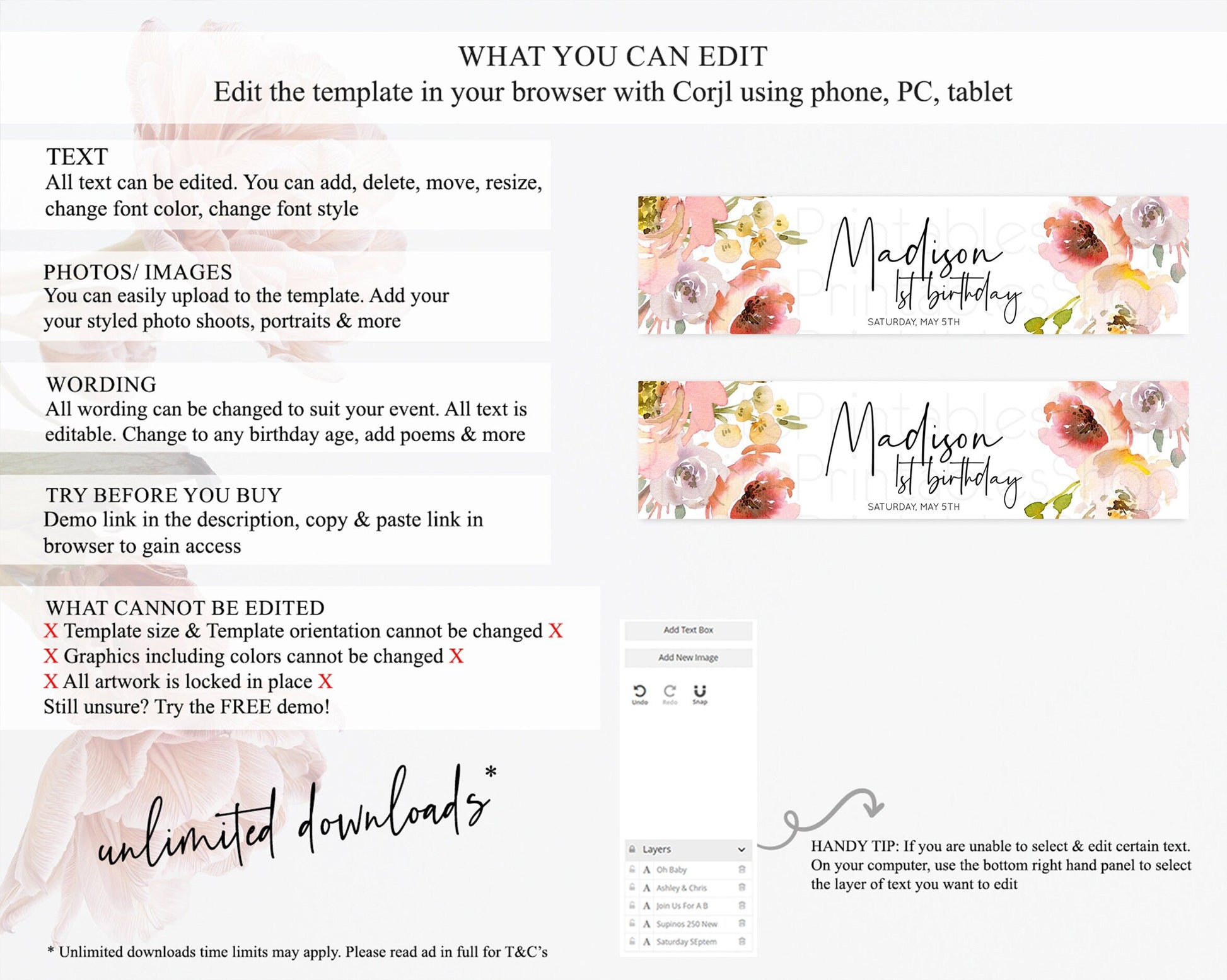 Wildflower Water Label Template Secret Garden Water Label Pastel Floral Garden Party Decor Boho Flowers Birthday Baby Shower Wedding D10194