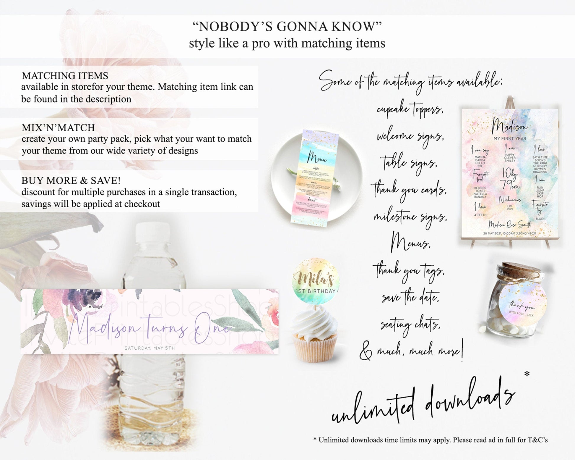 Wildflower Water Label Template Secret Garden Water Label Pastel Floral Garden Party Decor Boho Flowers Birthday Baby Shower Wedding D10198