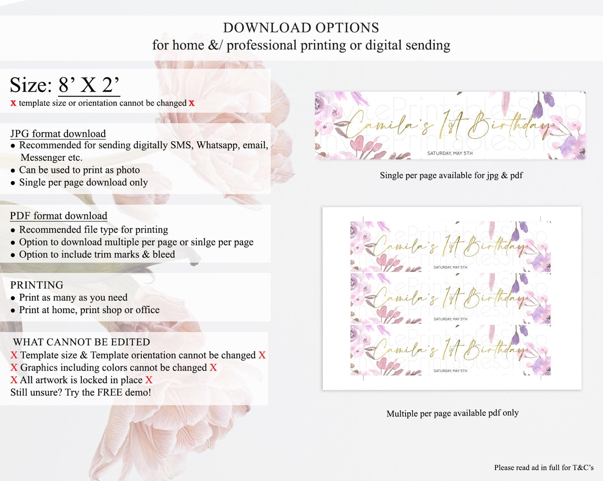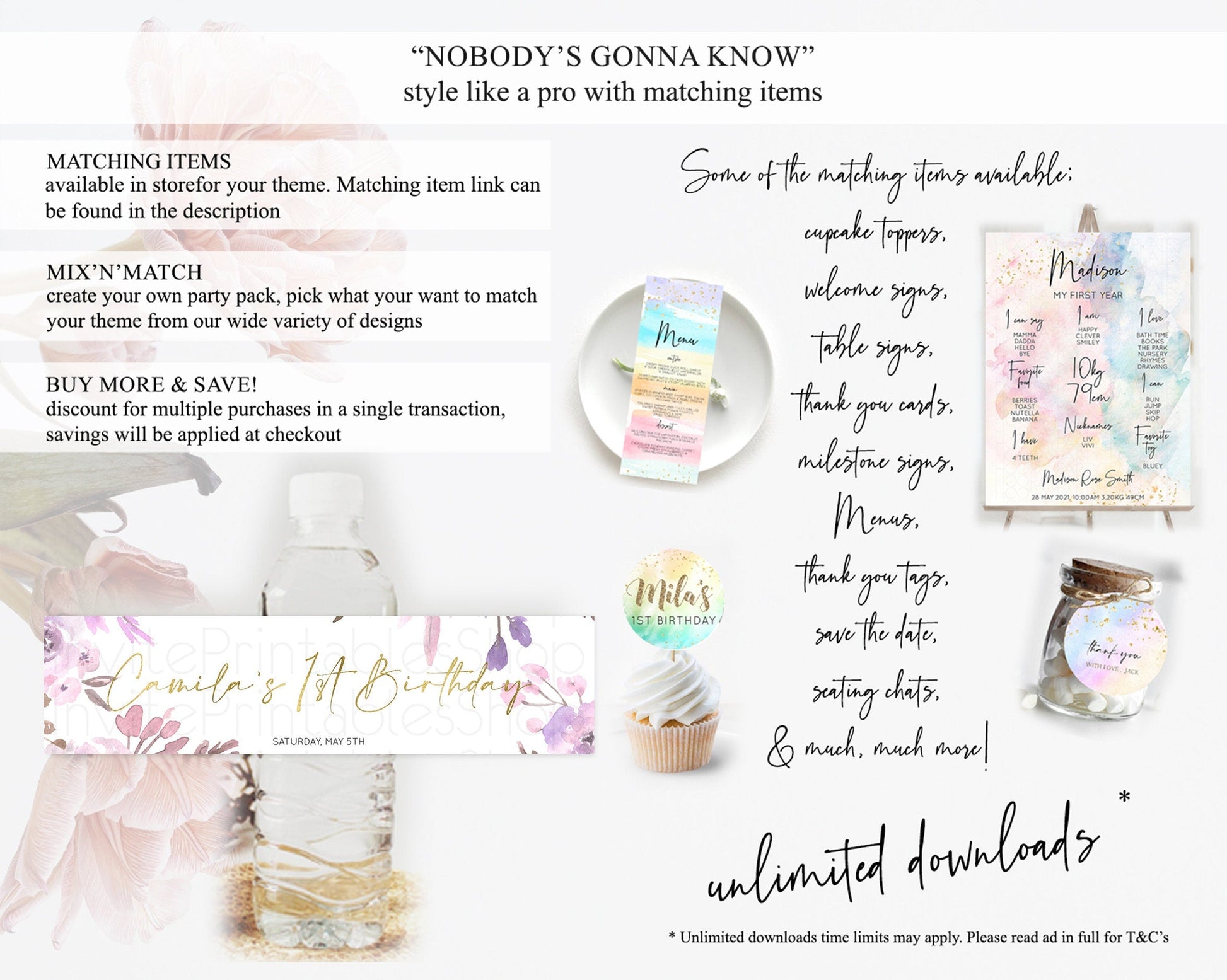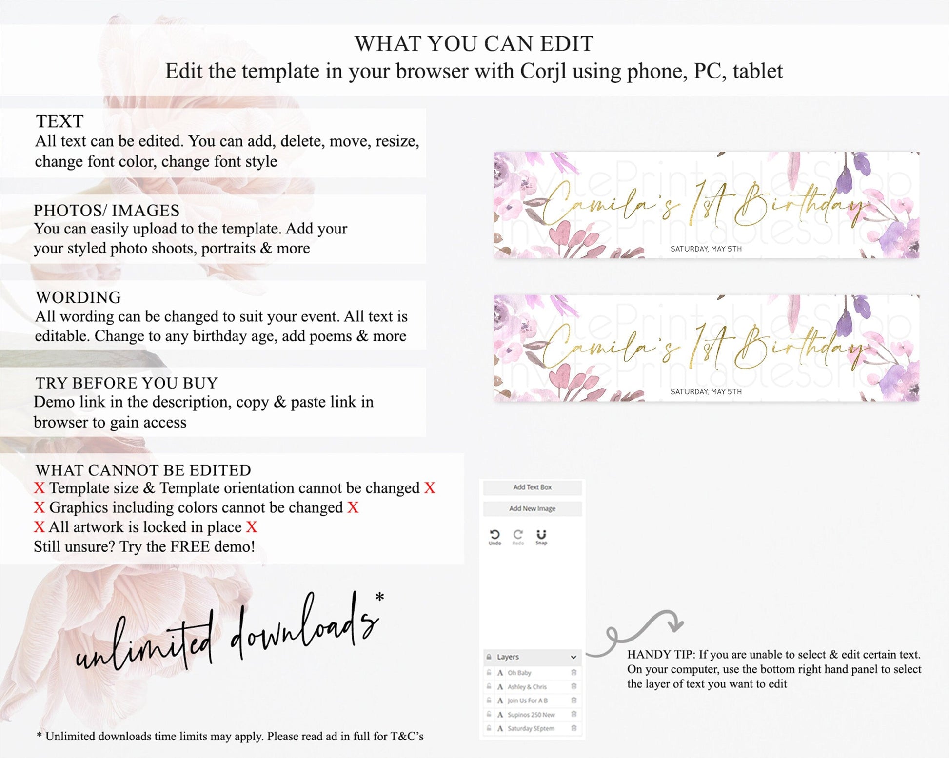 Wildflower Water Label Template Secret Garden Water Label Pastel Floral Garden Party Decor Boho Flowers Birthday Baby Shower Wedding D10201