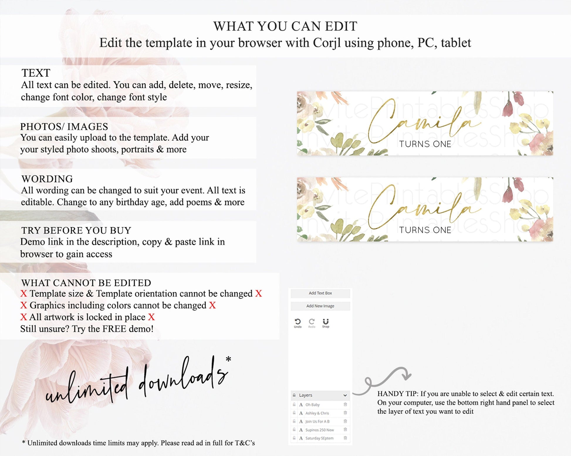 Wildflower Water Label Template Secret Garden Water Label Pastel Floral Garden Party Decor Boho Flowers Birthday Baby Shower Wedding D10202