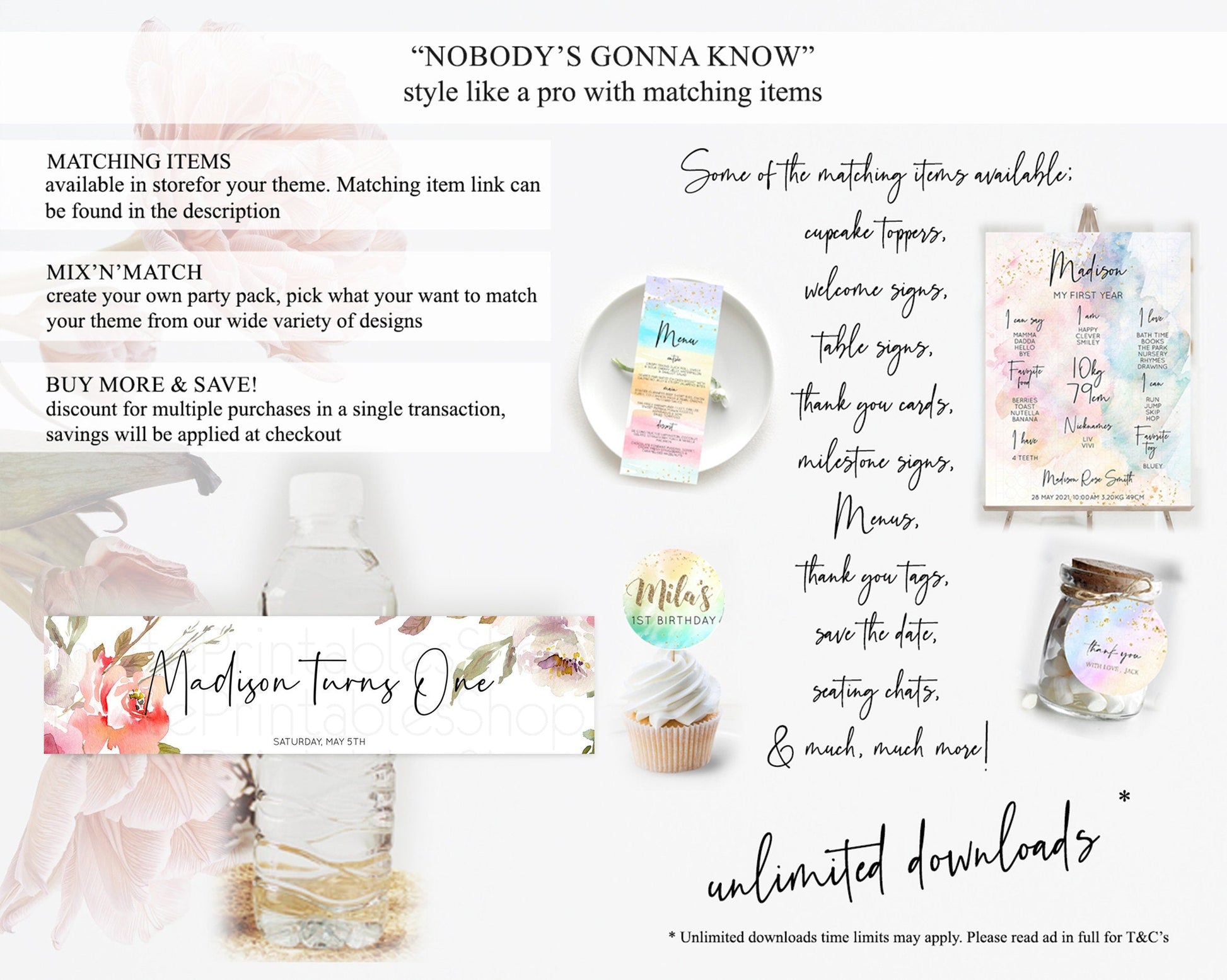 Wildflower Water Label Template Secret Garden Water Label Pastel Floral Garden Party Decor Boho Flowers Birthday Baby Shower Wedding D10243