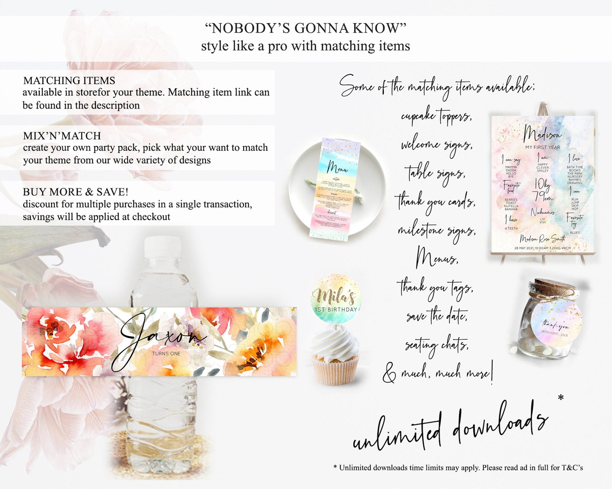 Wildflower Water Label Template Secret Garden Water Label Pastel Floral Garden Party Decor Boho Flowers Birthday Baby Shower Wedding D10280