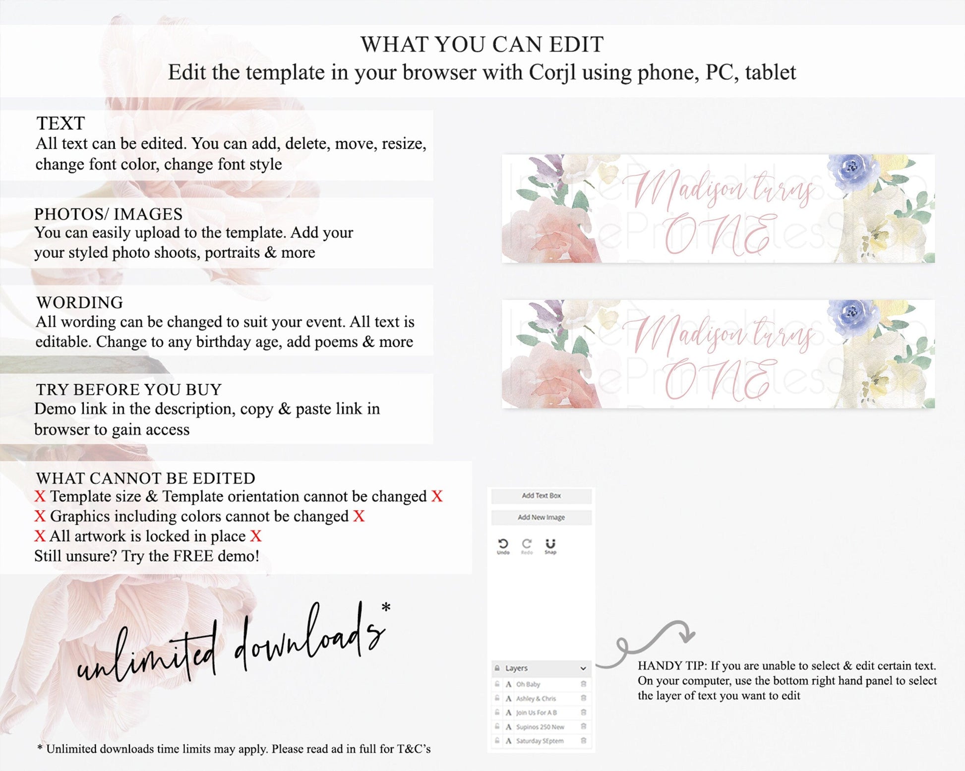 Wildflower Water Label Template Secret Garden Water Label Pastel Floral Garden Party Decor Boho Flowers Birthday Baby Shower Wedding D10841