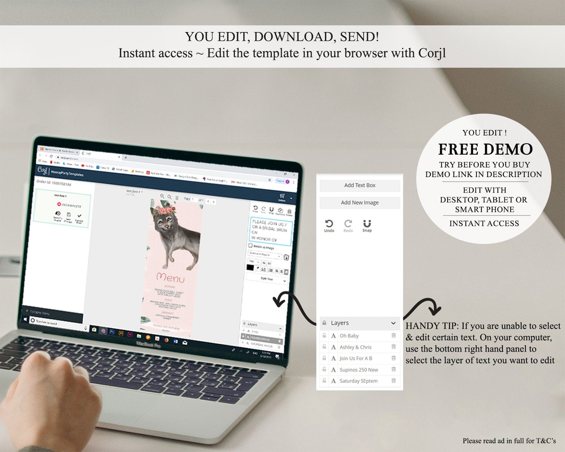 • After purchase, Corjl emails your editing link. Allow up to 15 minutes for delivery.
