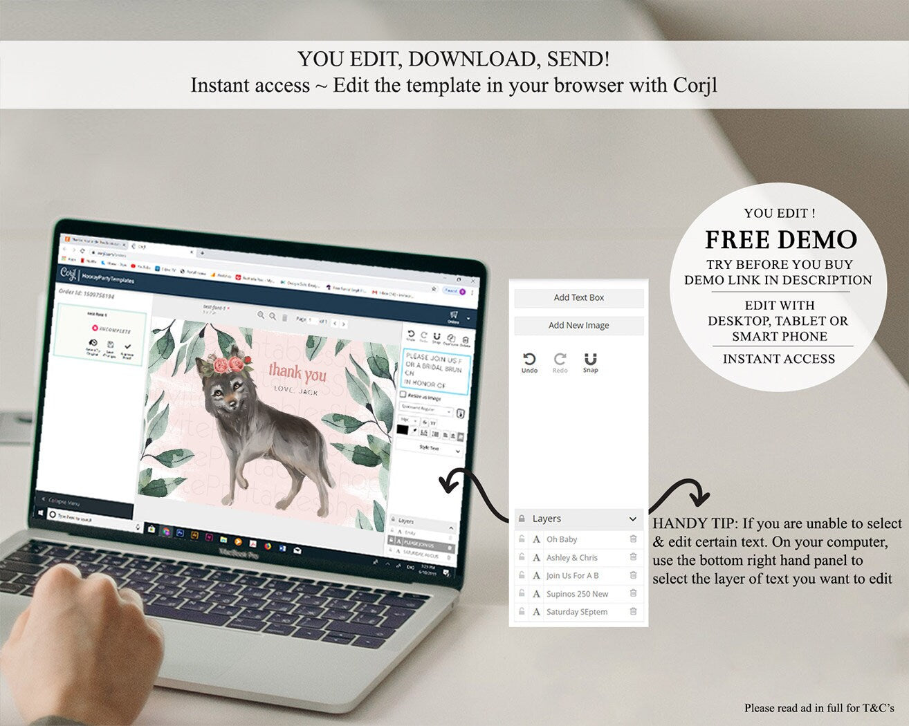 • After purchase, Corjl emails your editing link. Allow up to 15 minutes for delivery.