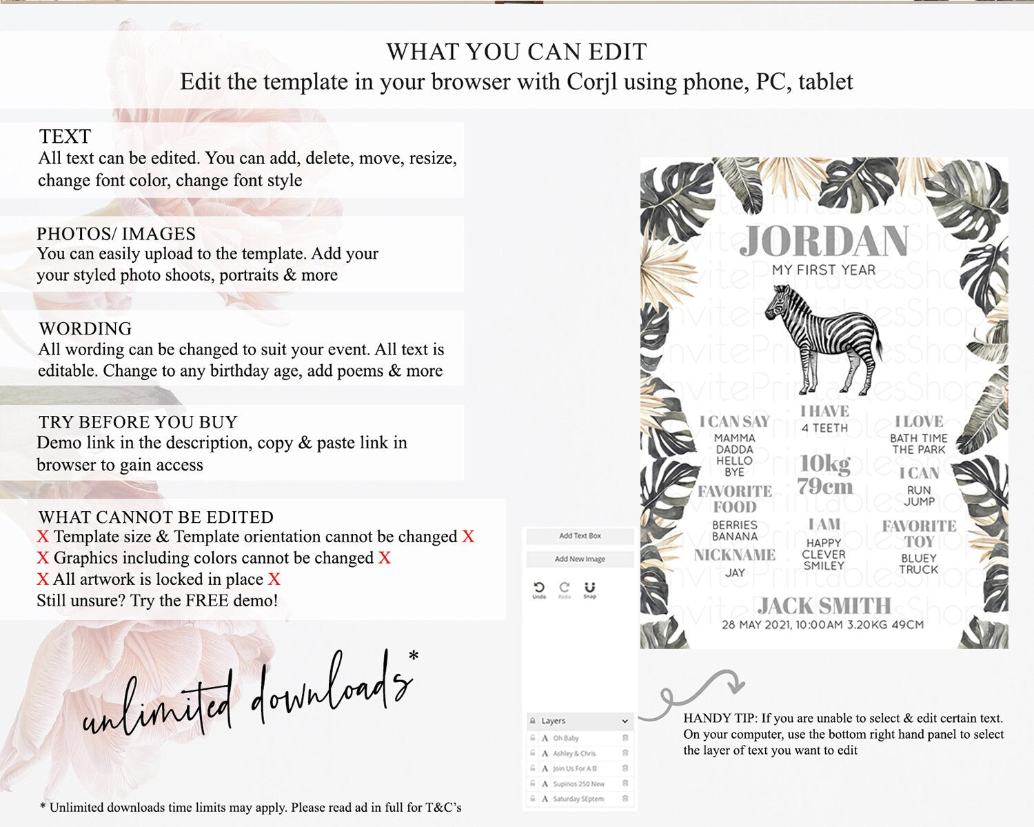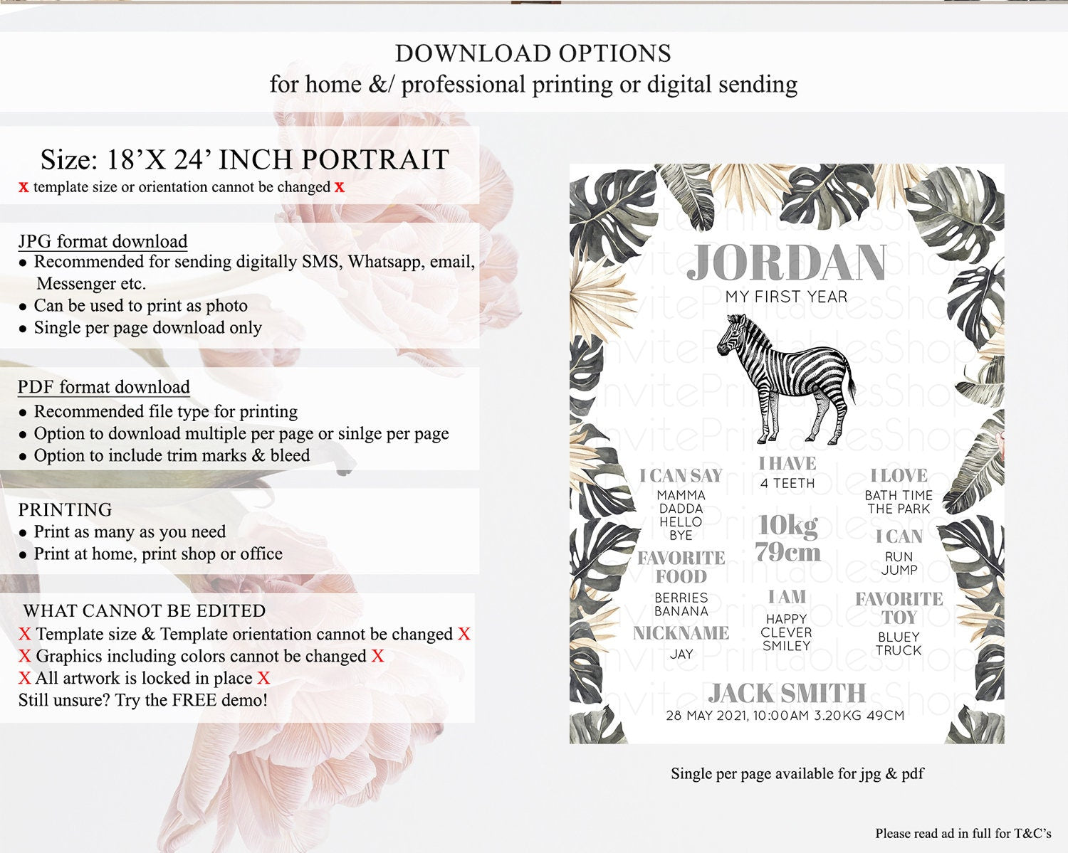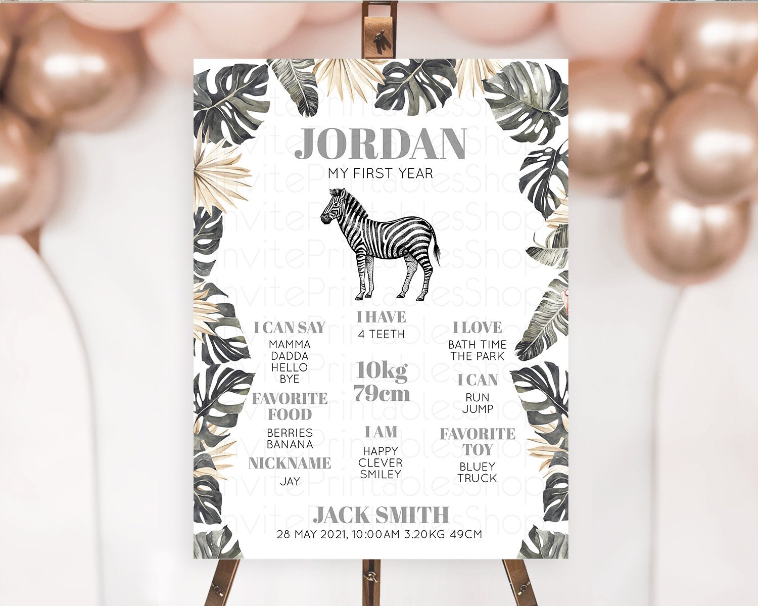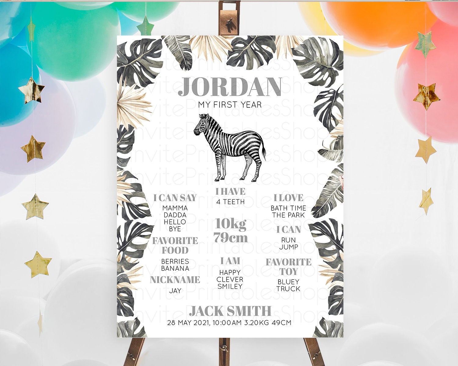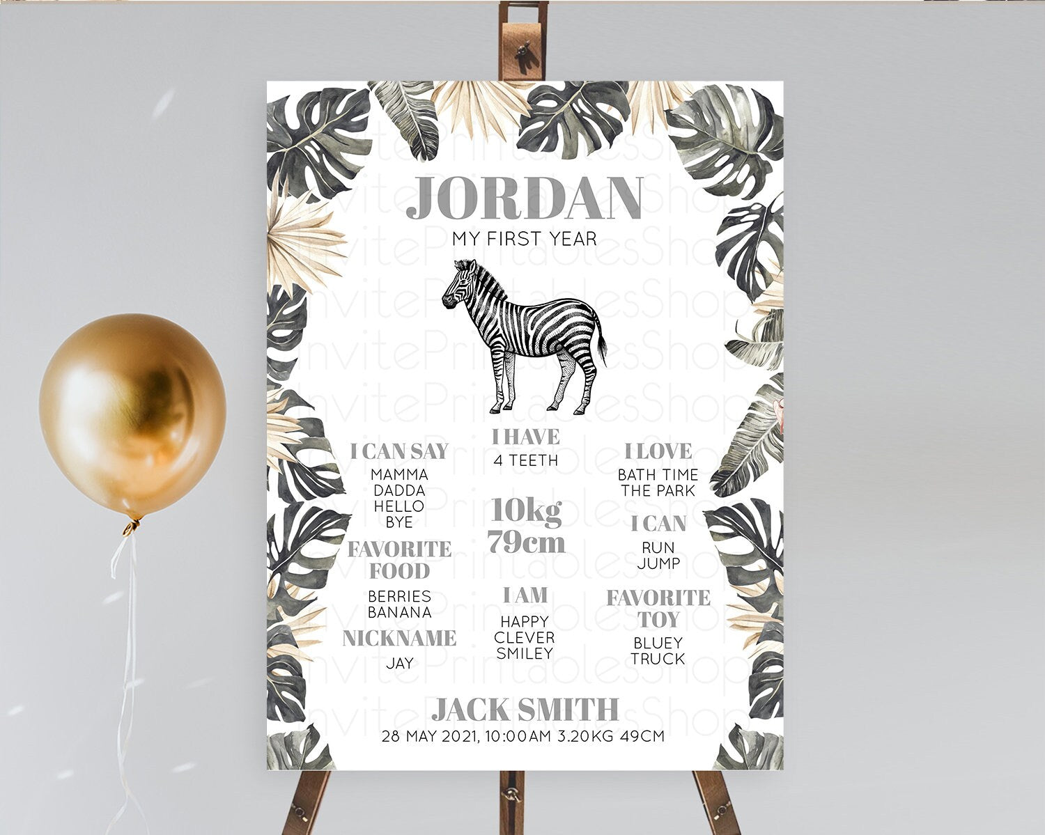 Zebra First Birthday Milestone Board Zebra Milestone Poster Zebra Decor Safari Adventure Zebra First Birthday Welcome Sign D10824