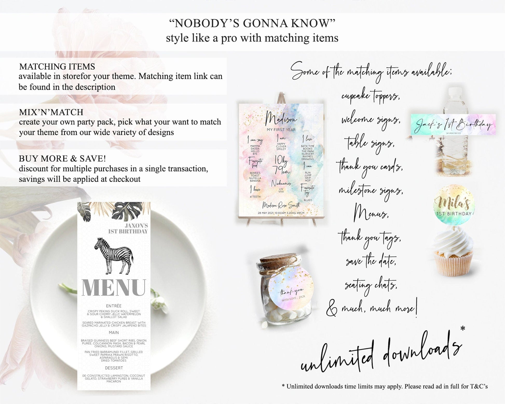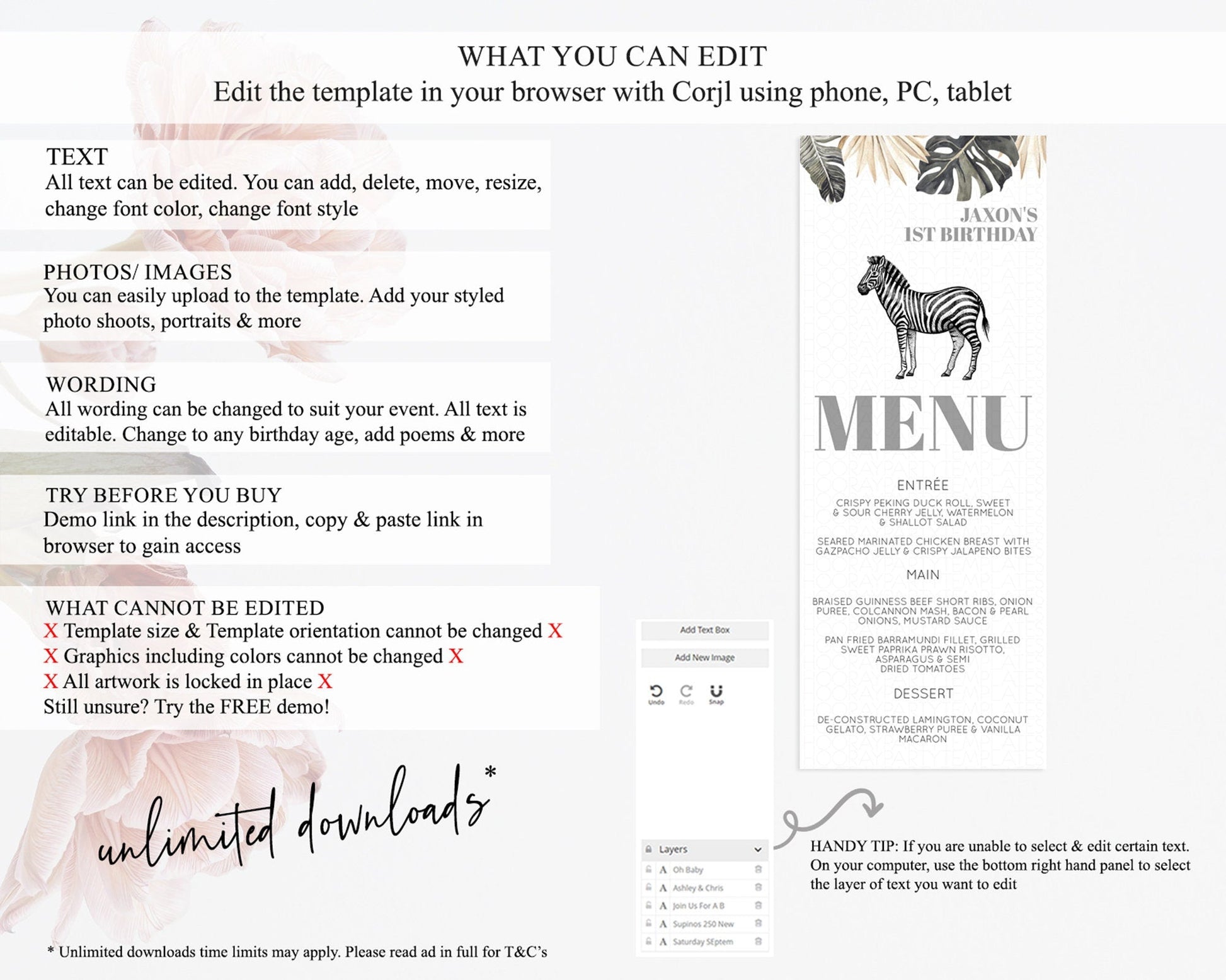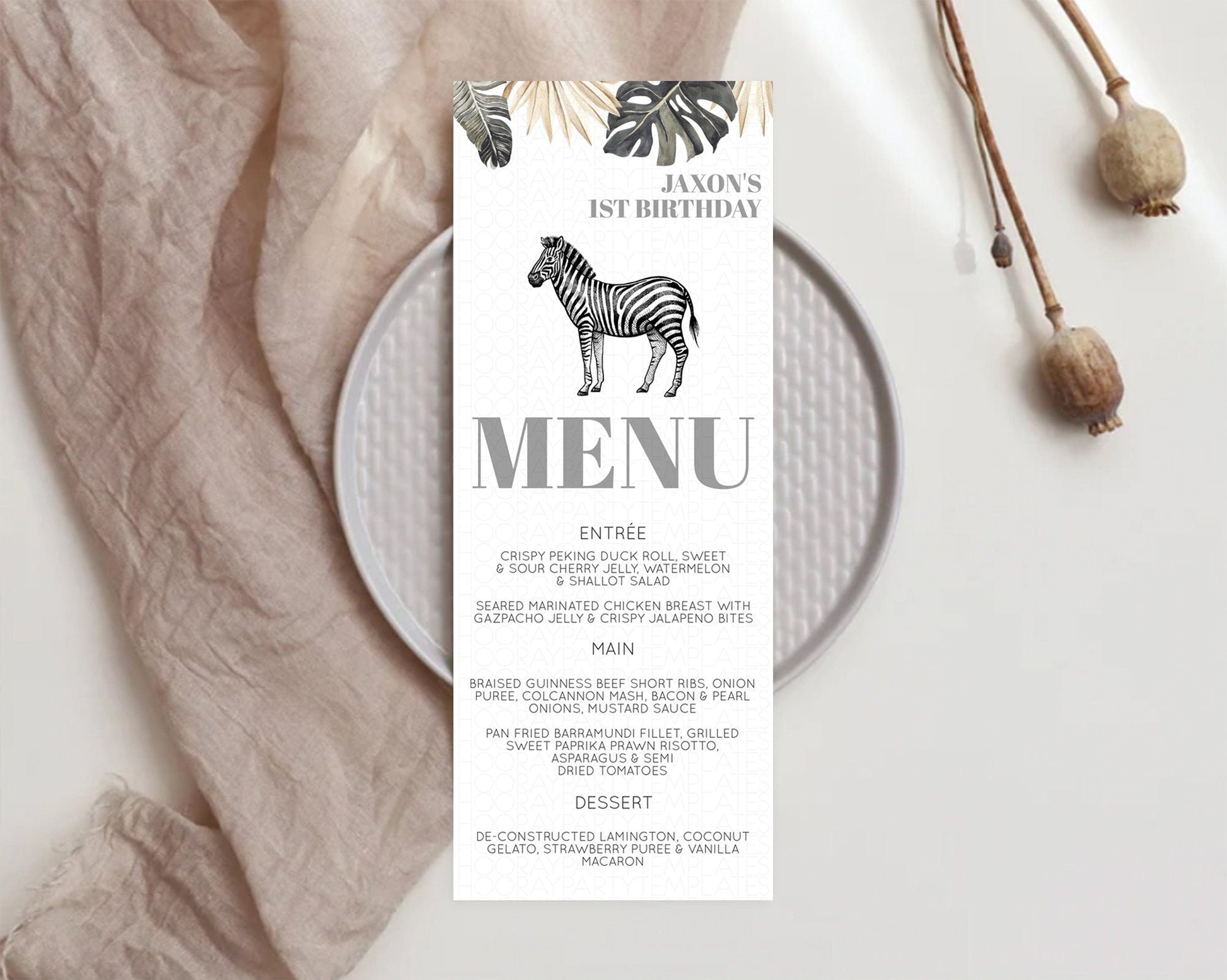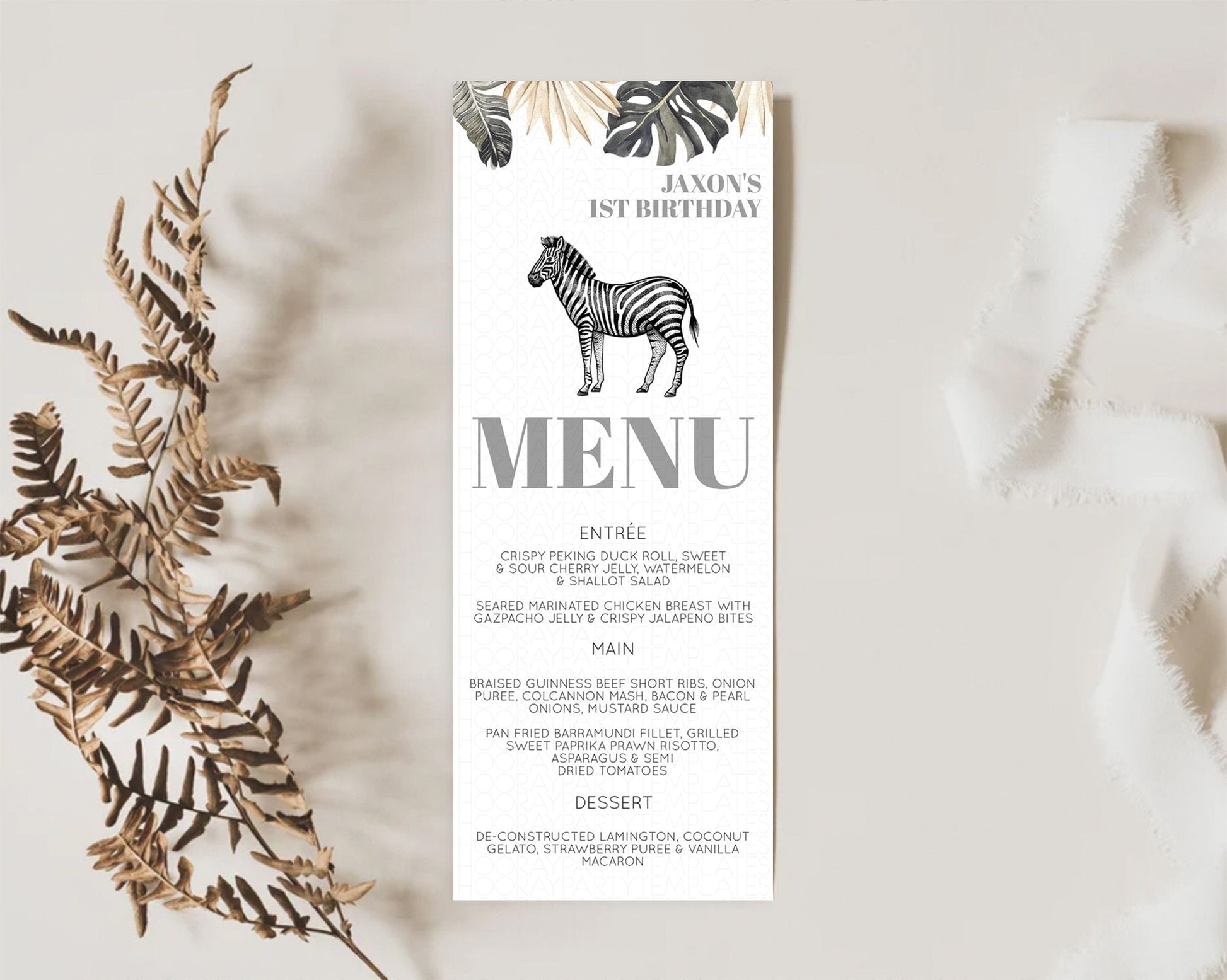 Zebra Menu Zebra Menu Template Zebra Party Table Decor Safari Adventure Decor Zebra Dinner Dessert Menu Party Food Menu D10824