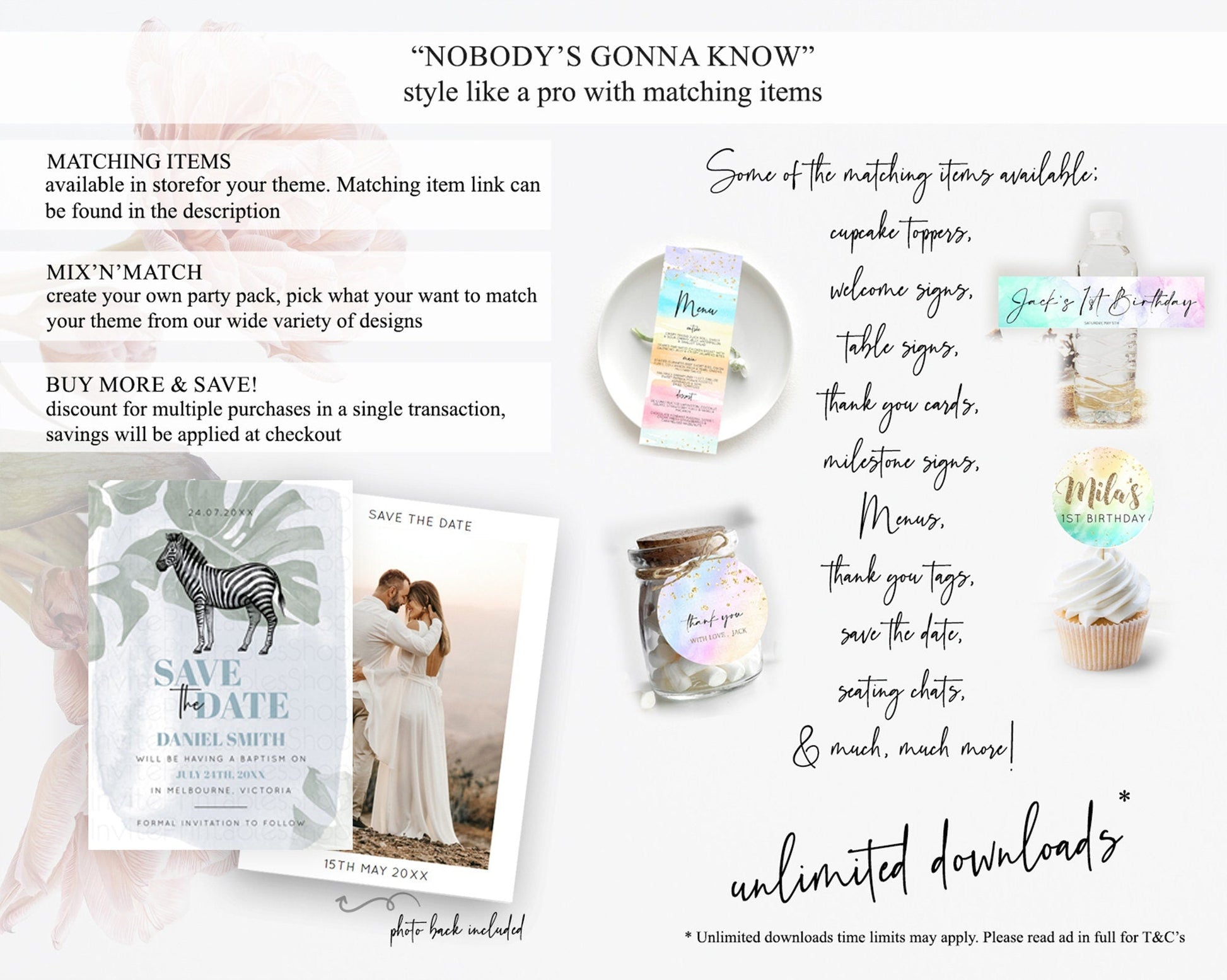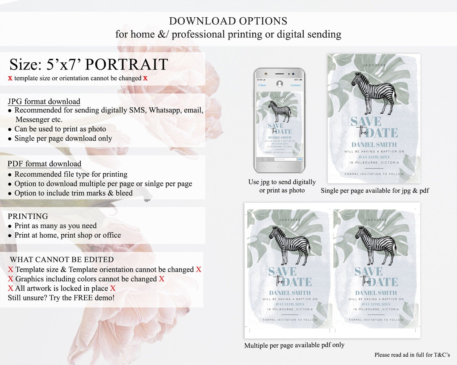 Zebra Save The Date Template Zebra Party Save The Date Safari Adventure Zebra Minimal Theme For 1st Birthday Baptism Baby Shower D10814