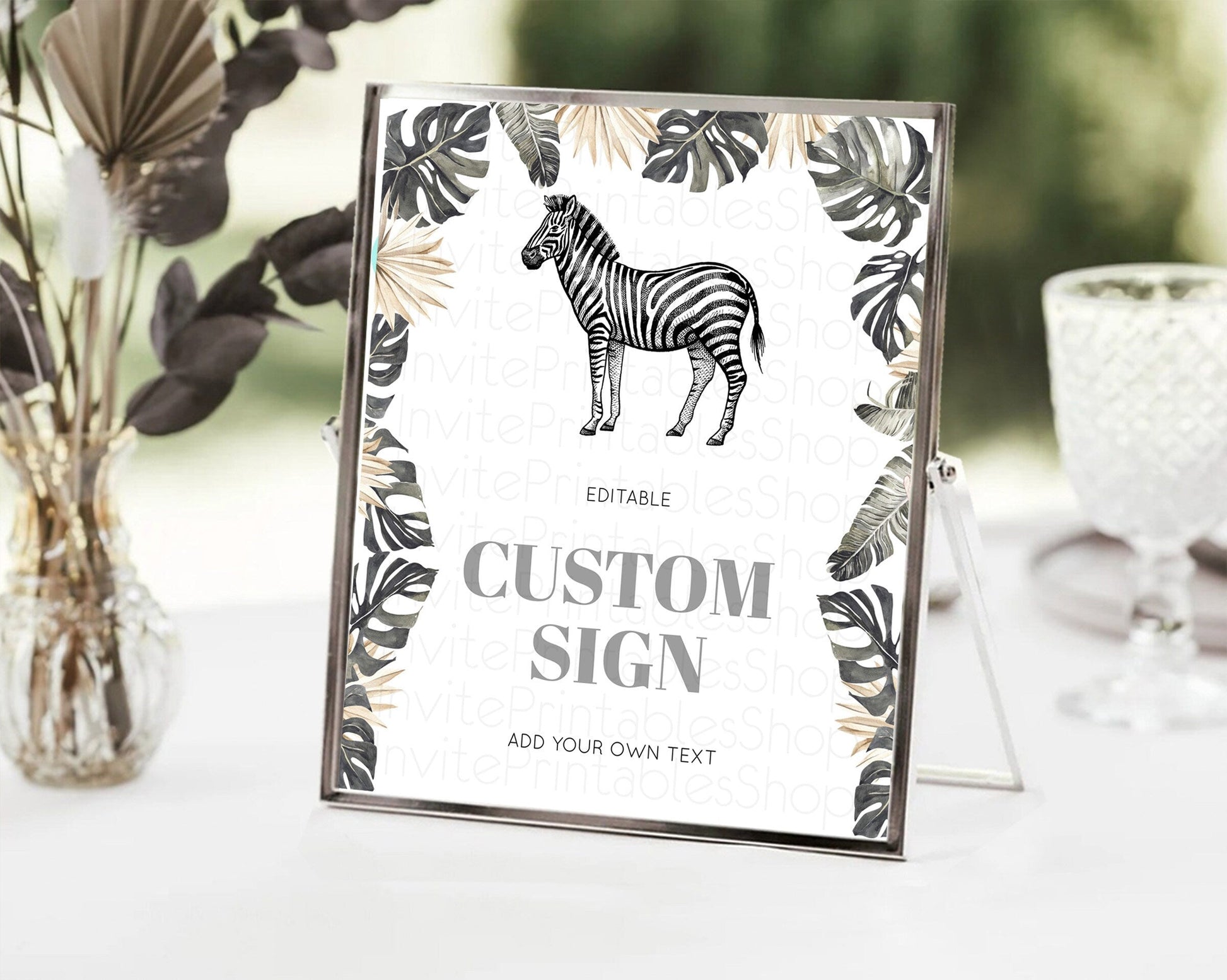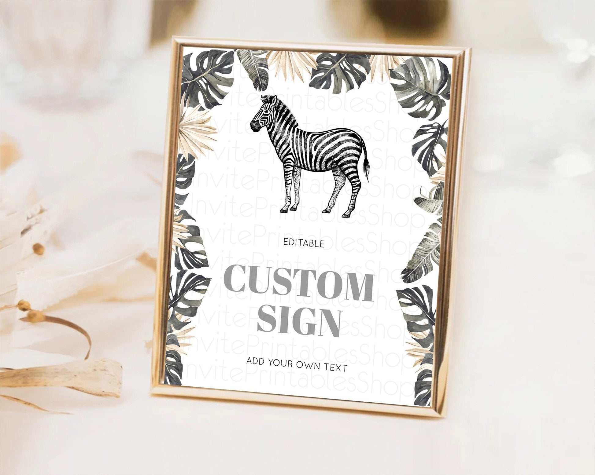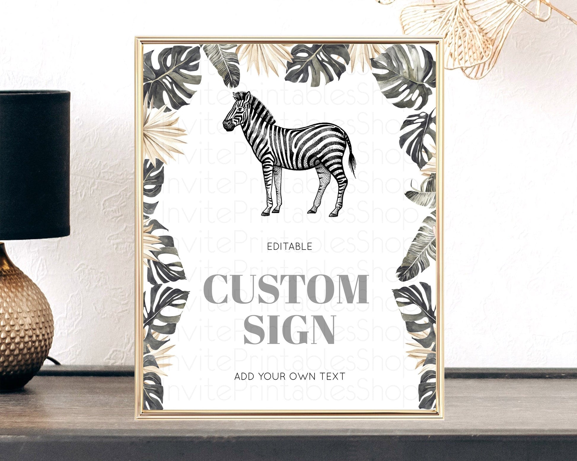 Zebra Sign Zebra Table Sign Decor Zebra Party Sign Template Safari Adventure Zebra Minimal Theme 1st Birthday Baptism Baby Shower D10824