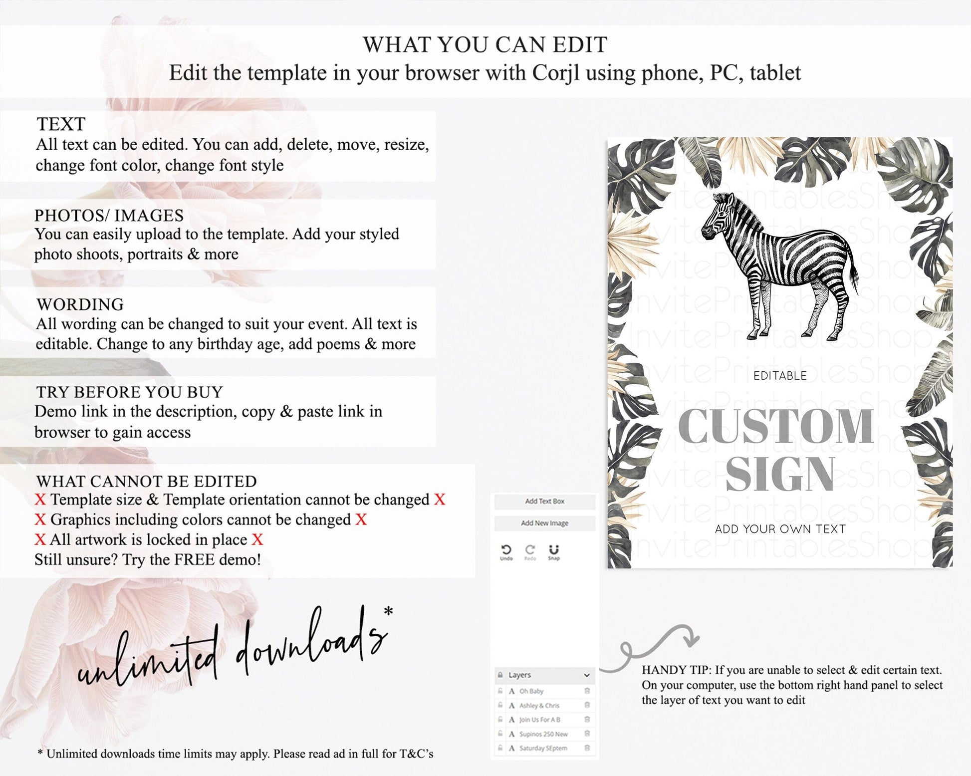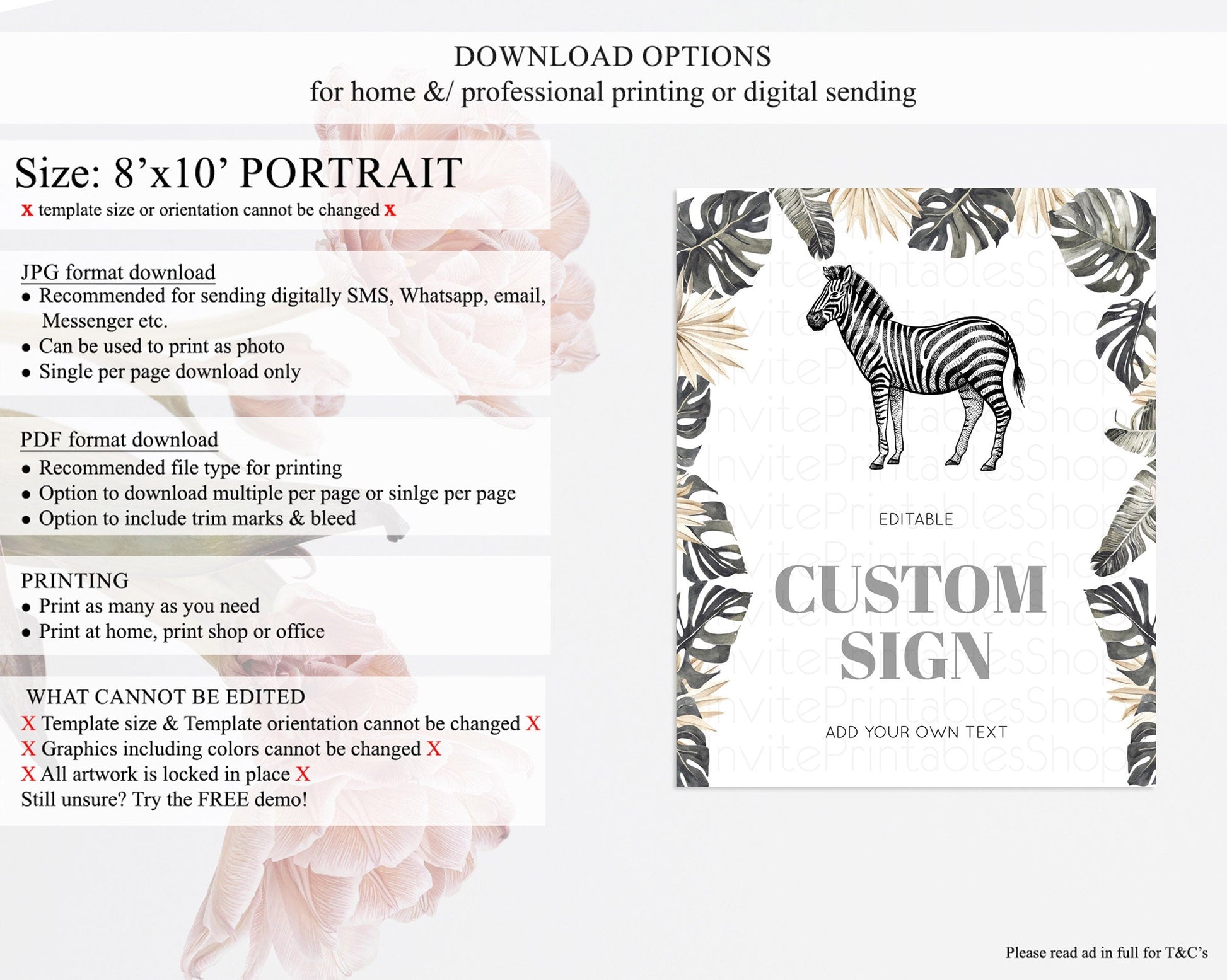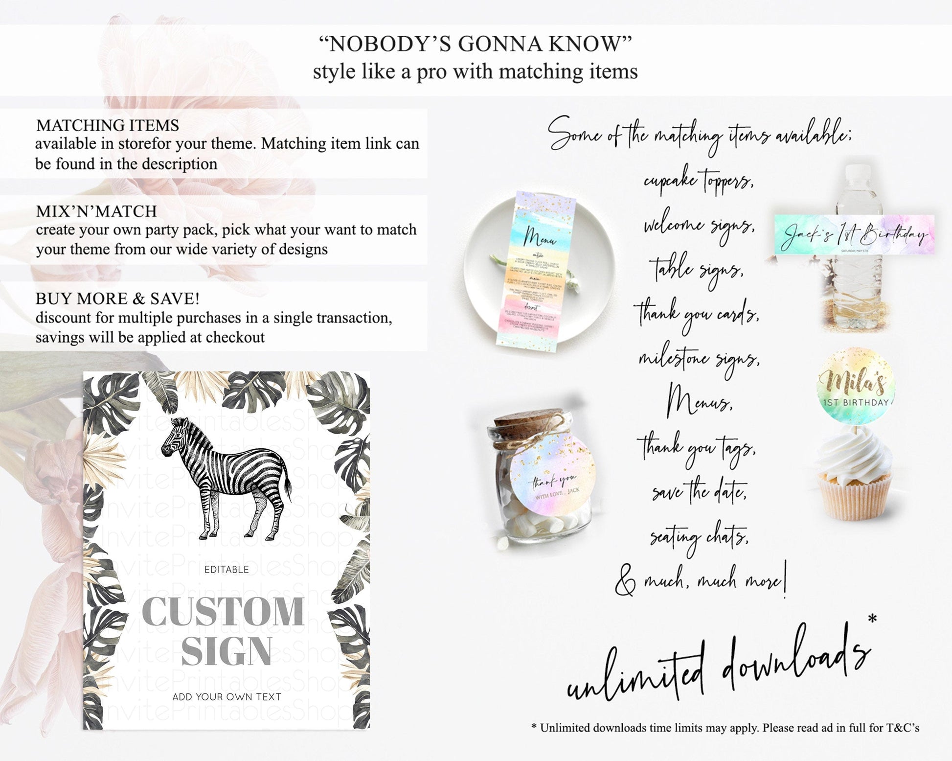 Zebra Sign Zebra Table Sign Decor Zebra Party Sign Template Safari Adventure Zebra Minimal Theme 1st Birthday Baptism Baby Shower D10824
