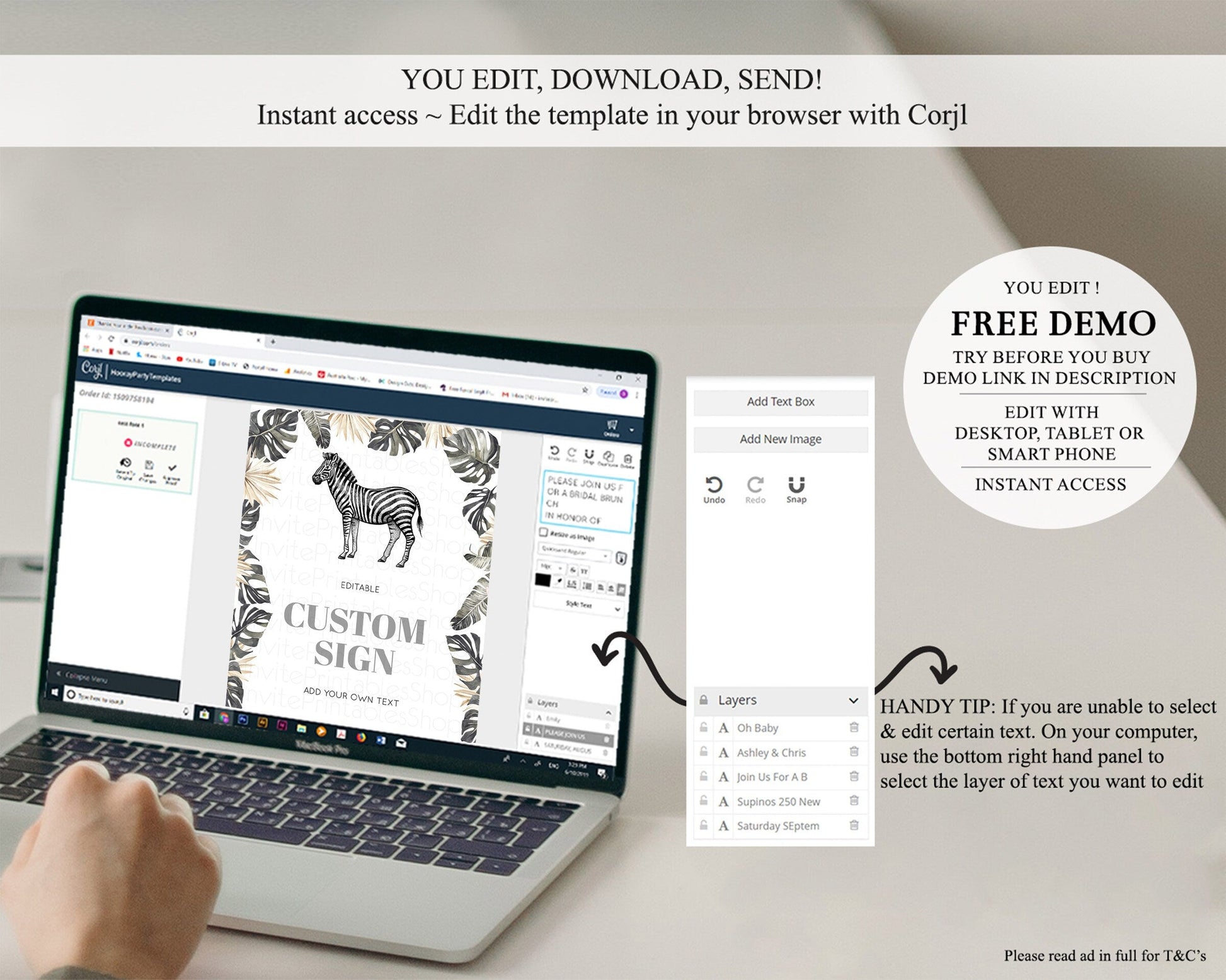 • After purchase, Corjl emails your editing link. Allow up to 15 minutes for delivery.