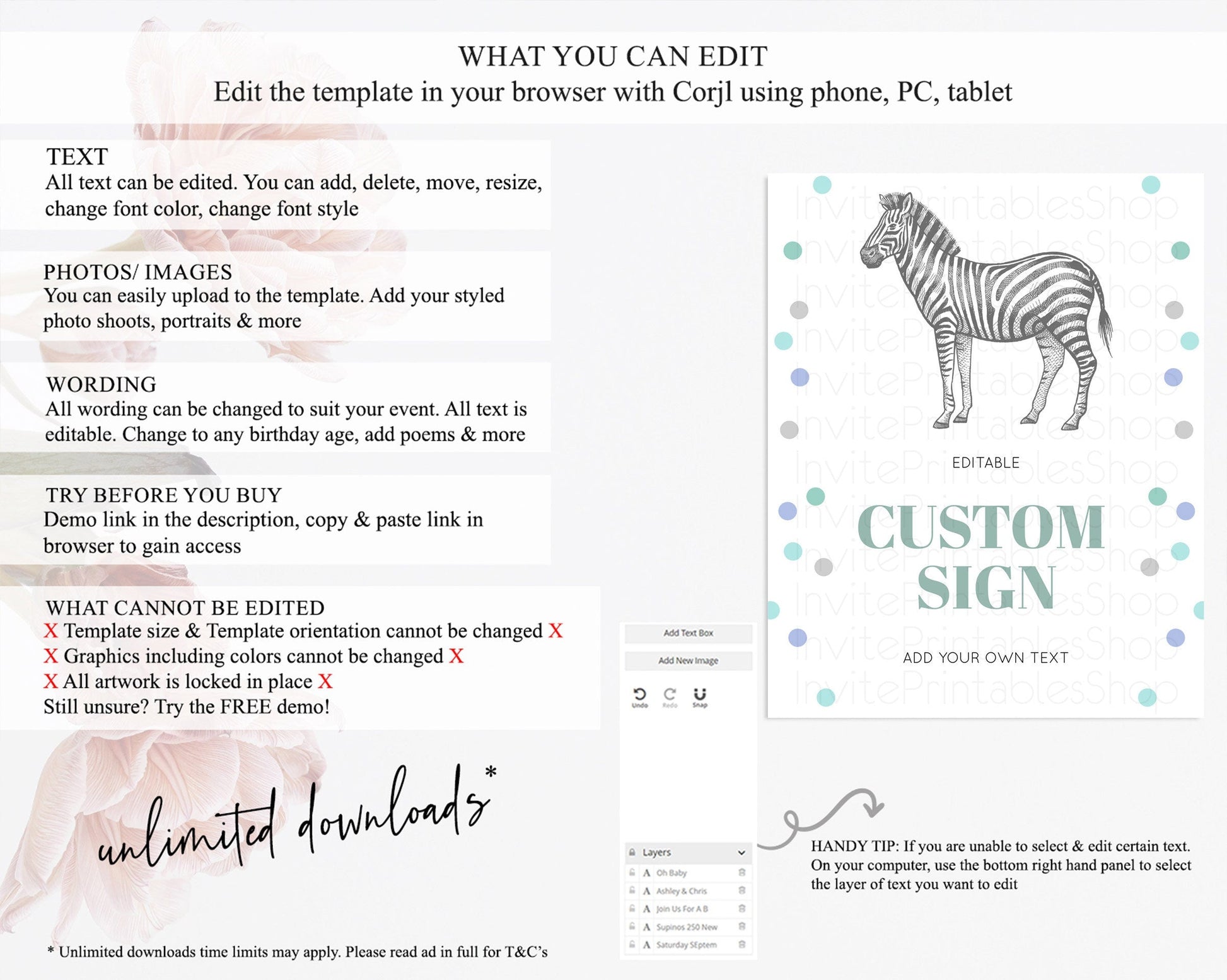 Zebra Sign Zebra Table Sign Decor Zebra Party Sign Template Safari Adventure Zebra Minimal Theme 1st Birthday Baptism Baby Shower D10856