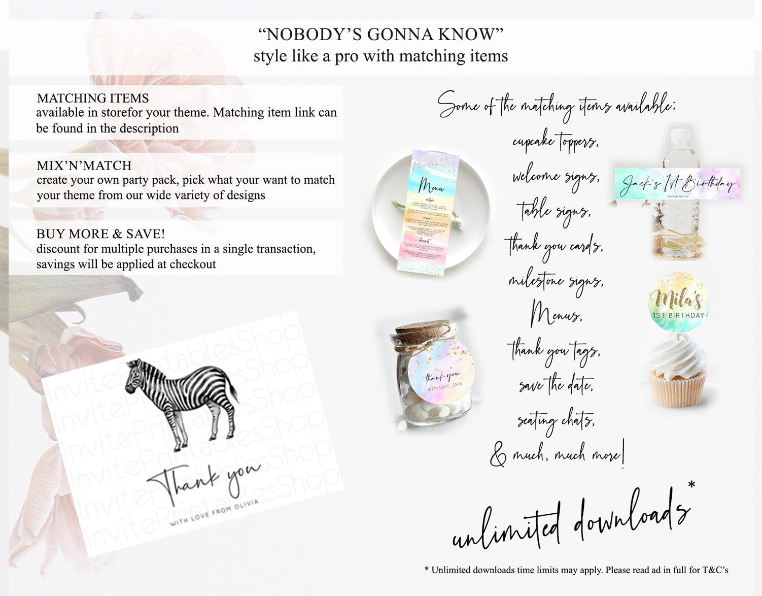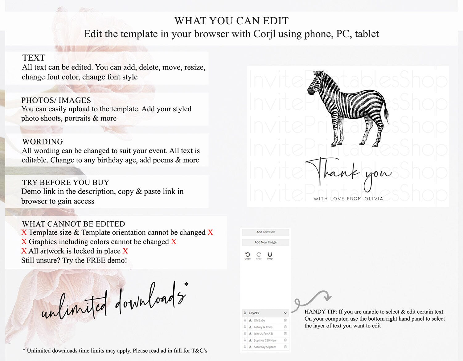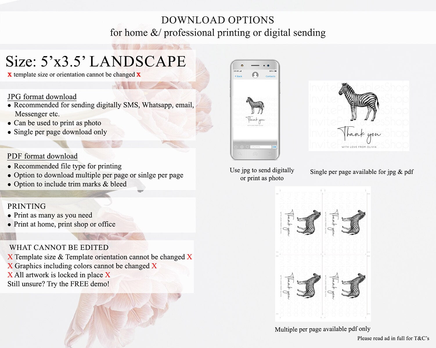 Zebra Thank You Zebra Thank You Card Zebra Birthday Thank You Cards Safari Dried Palm Fern Zebra Teacher Thank You Card Template D10249