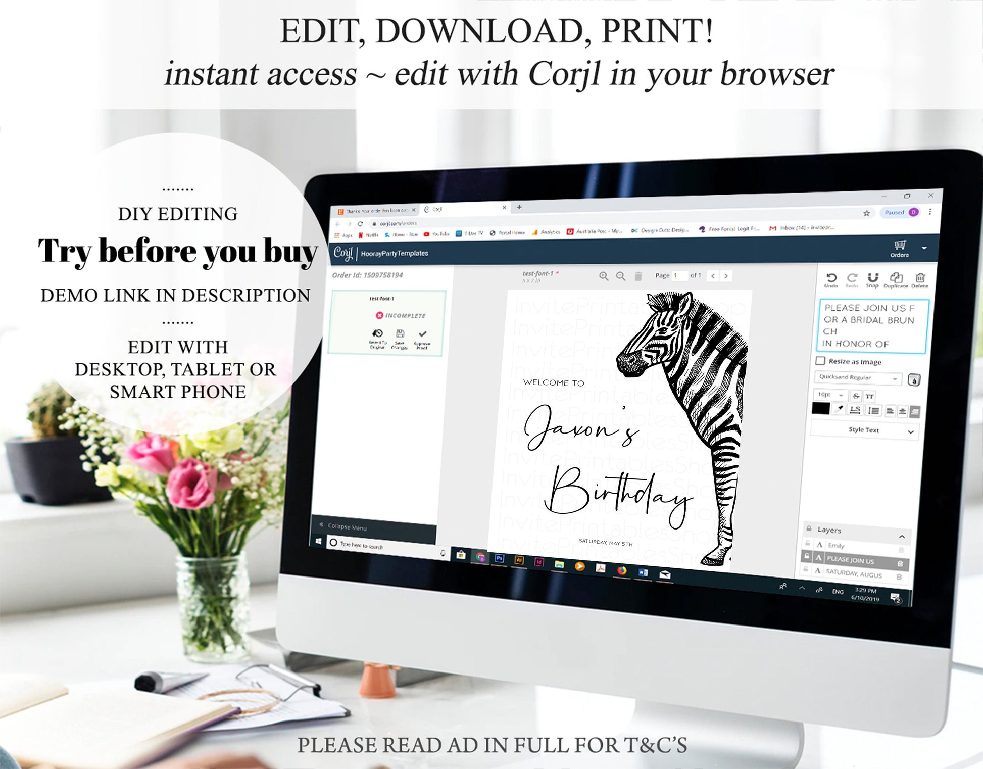• You edit/ DIY editing. Edit online with Corjl in your browser using your desktop or smartphone